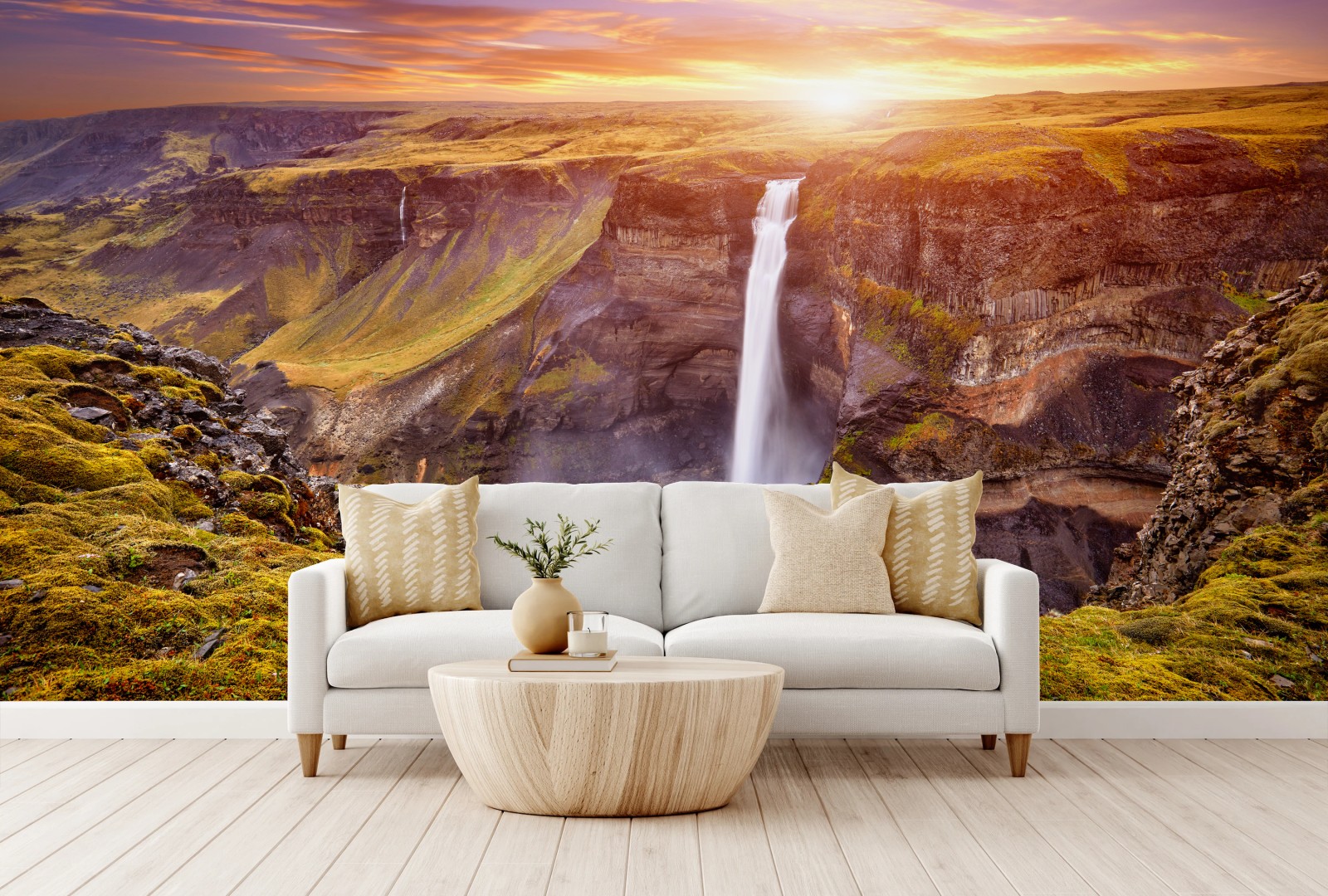 Fototapeta Haifoss wodospad o zachodzie słońca