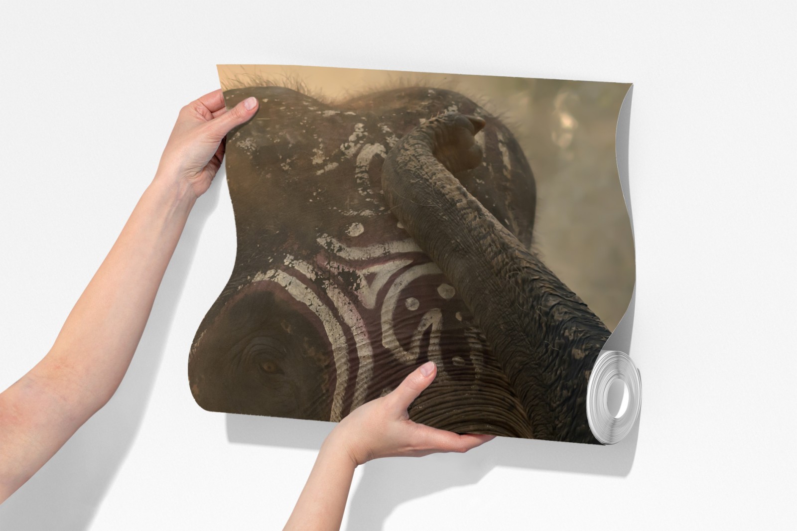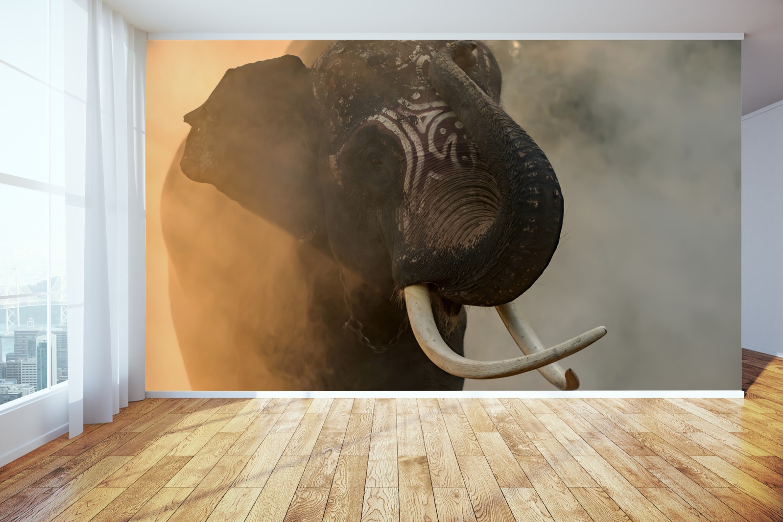 Wprowadź dziką siłę Tajlandii do wnętrza dzięki portretowi słonia z kłami skąpanego w złotym pyle.