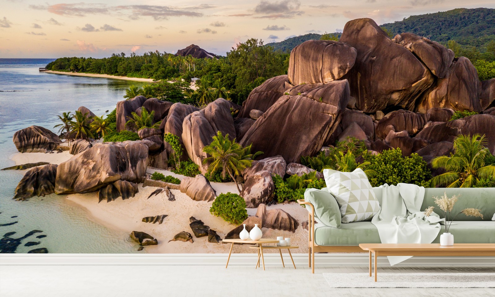 Fototapeta Anse d'Argent tropikalna plaża z granitowymi głazami