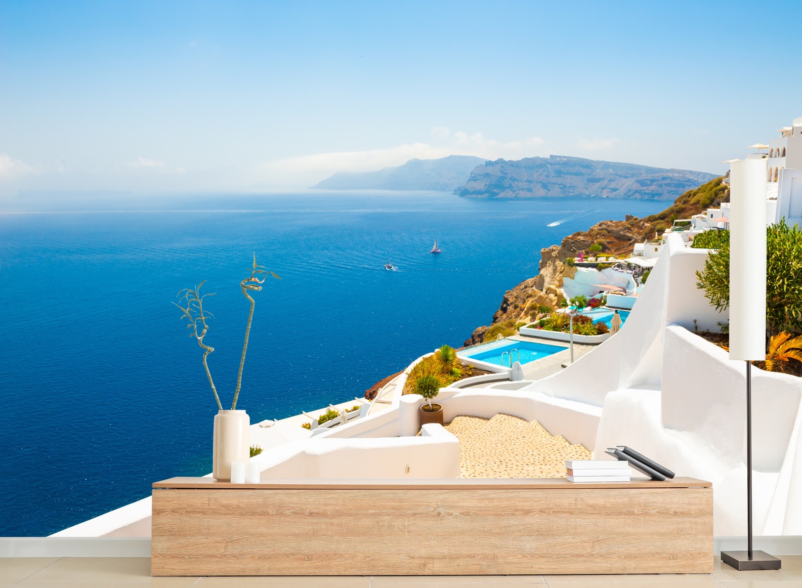 Fototapeta Santorini widok na wybrzeże z białą architekturą