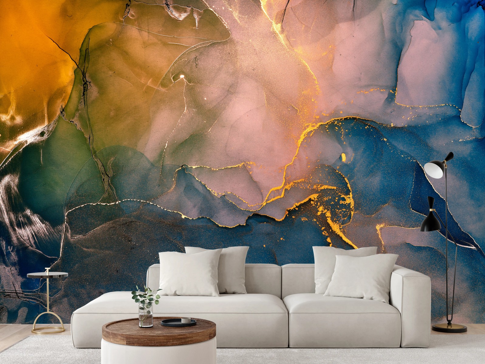 Fototapeta Niebiesko-złoty abstrakcyjny marmur