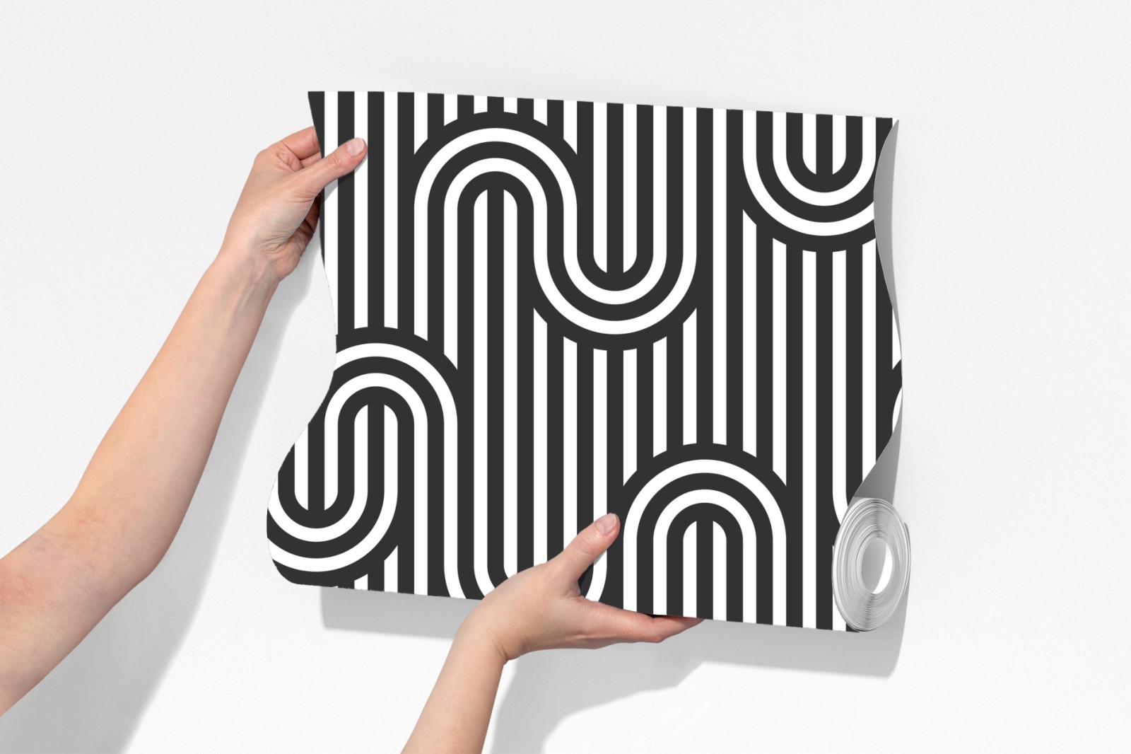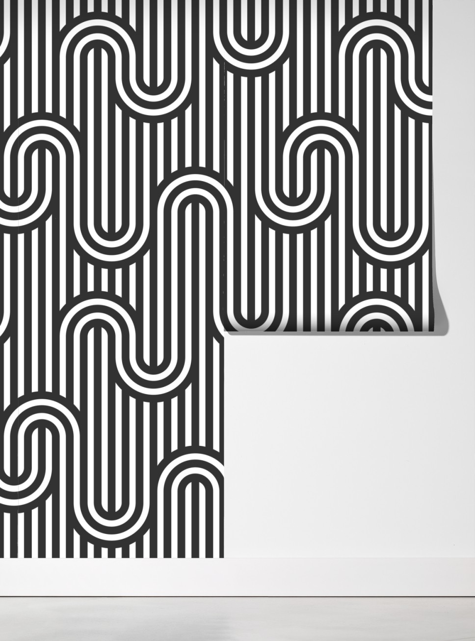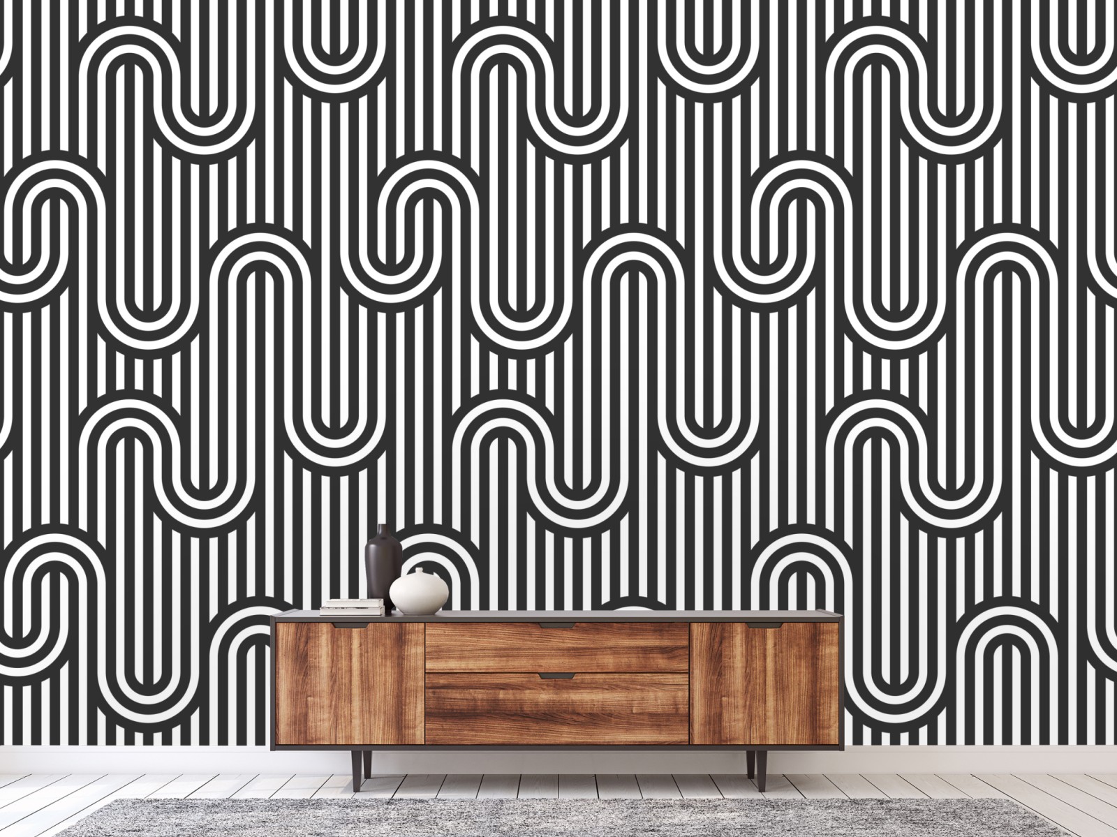 Odważny czarno-biały geometryczny wzór tworzący imponujący efekt optyczny idealny do nowoczesnych wnętrz.