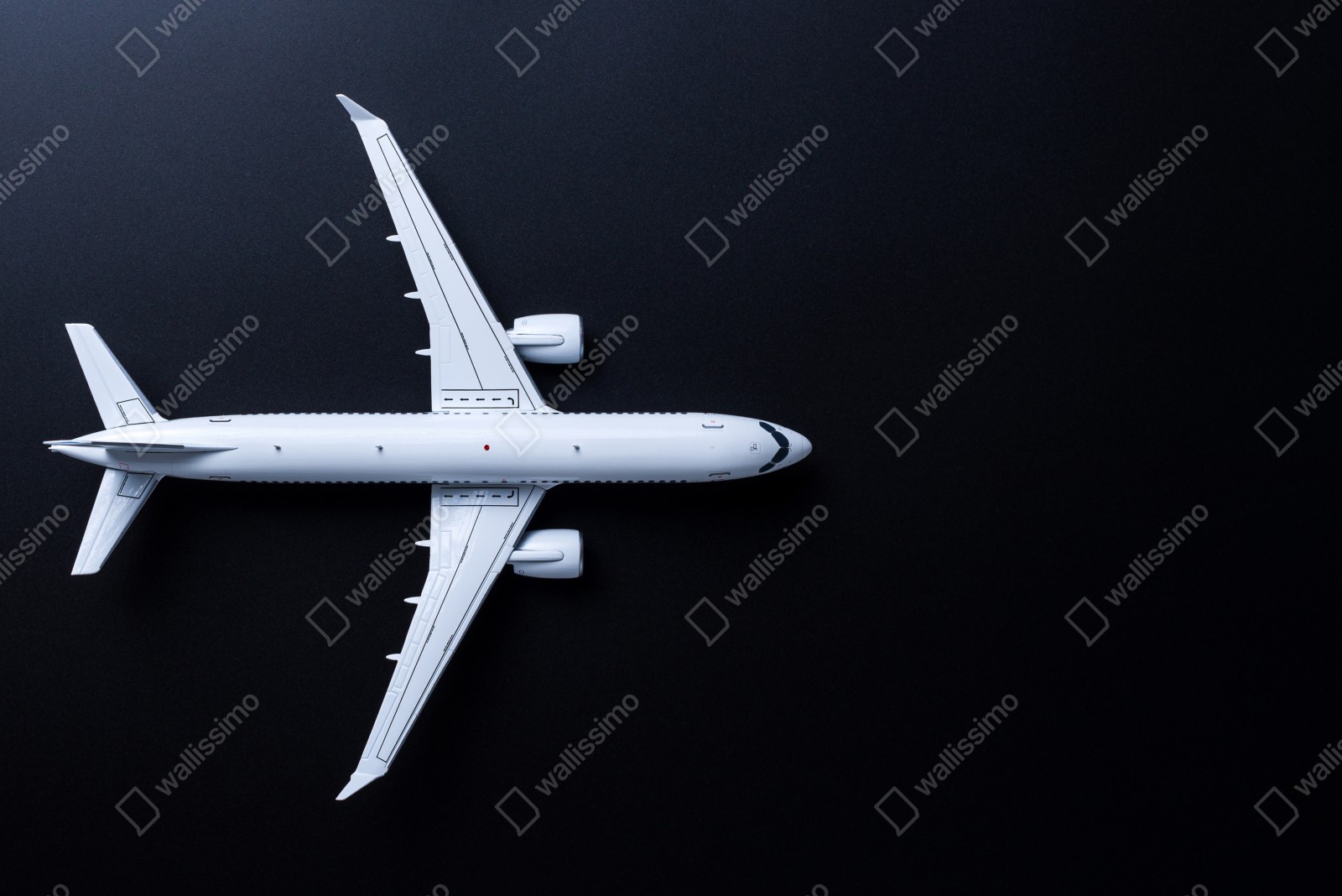 Fototapeta Biały samolot widok z góry na czarnym tle