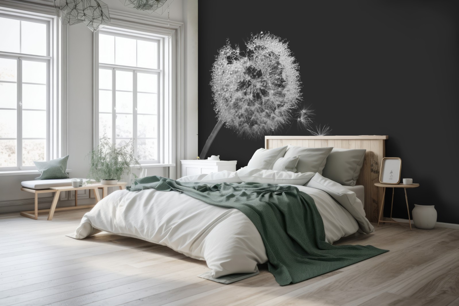 Elegancka monochromatyczna fotografia dmuchawca, która wprowadza spokój i naturalne piękno do każdego wnętrza.