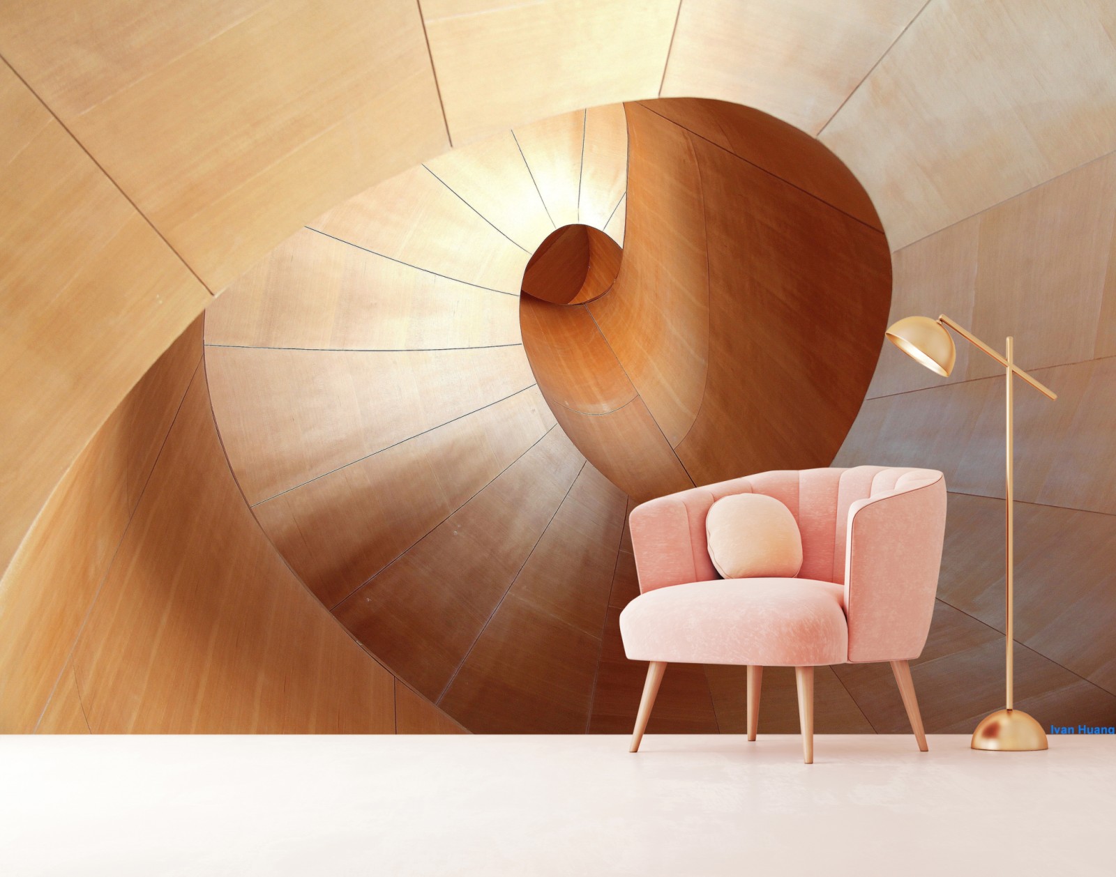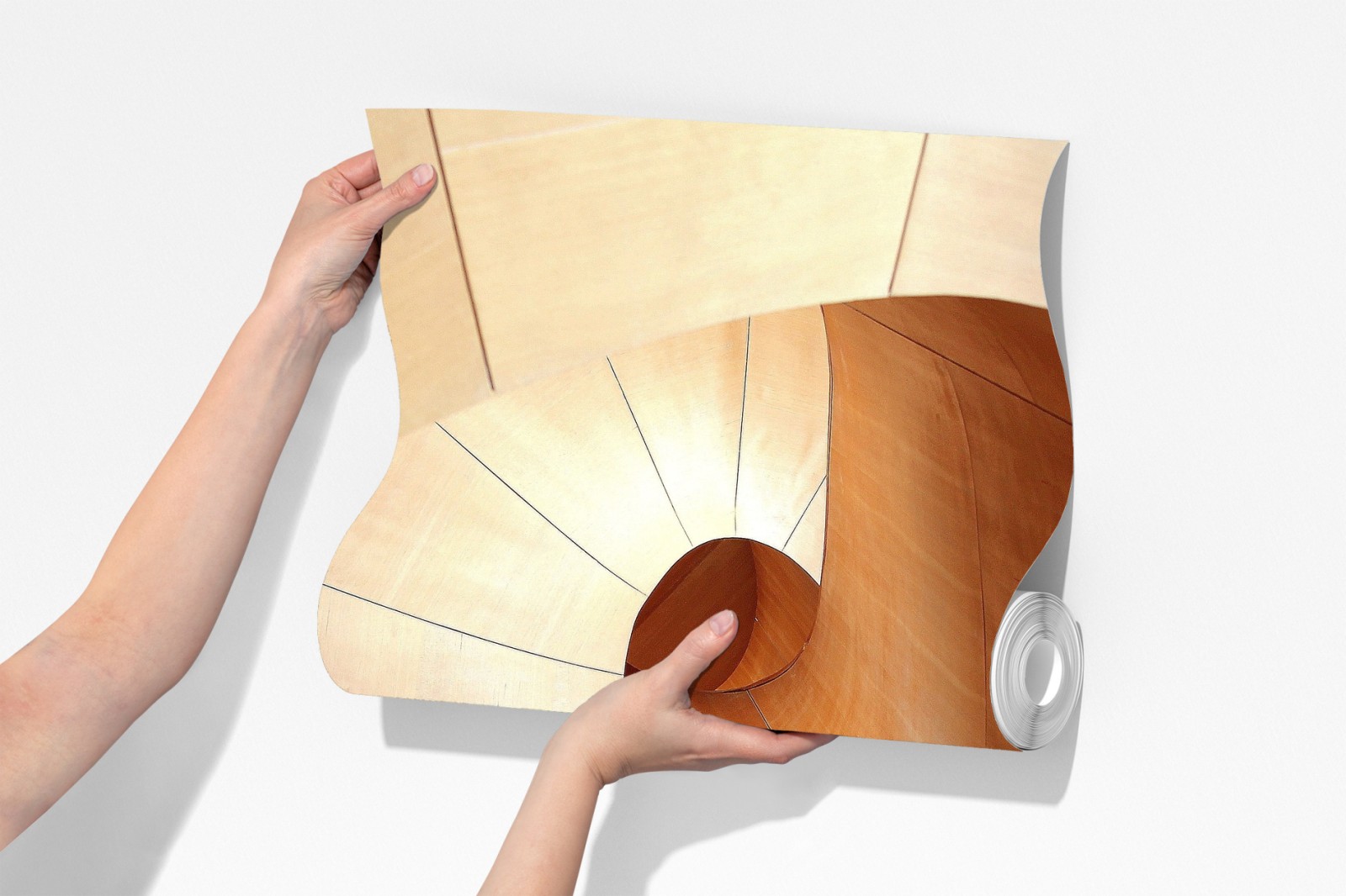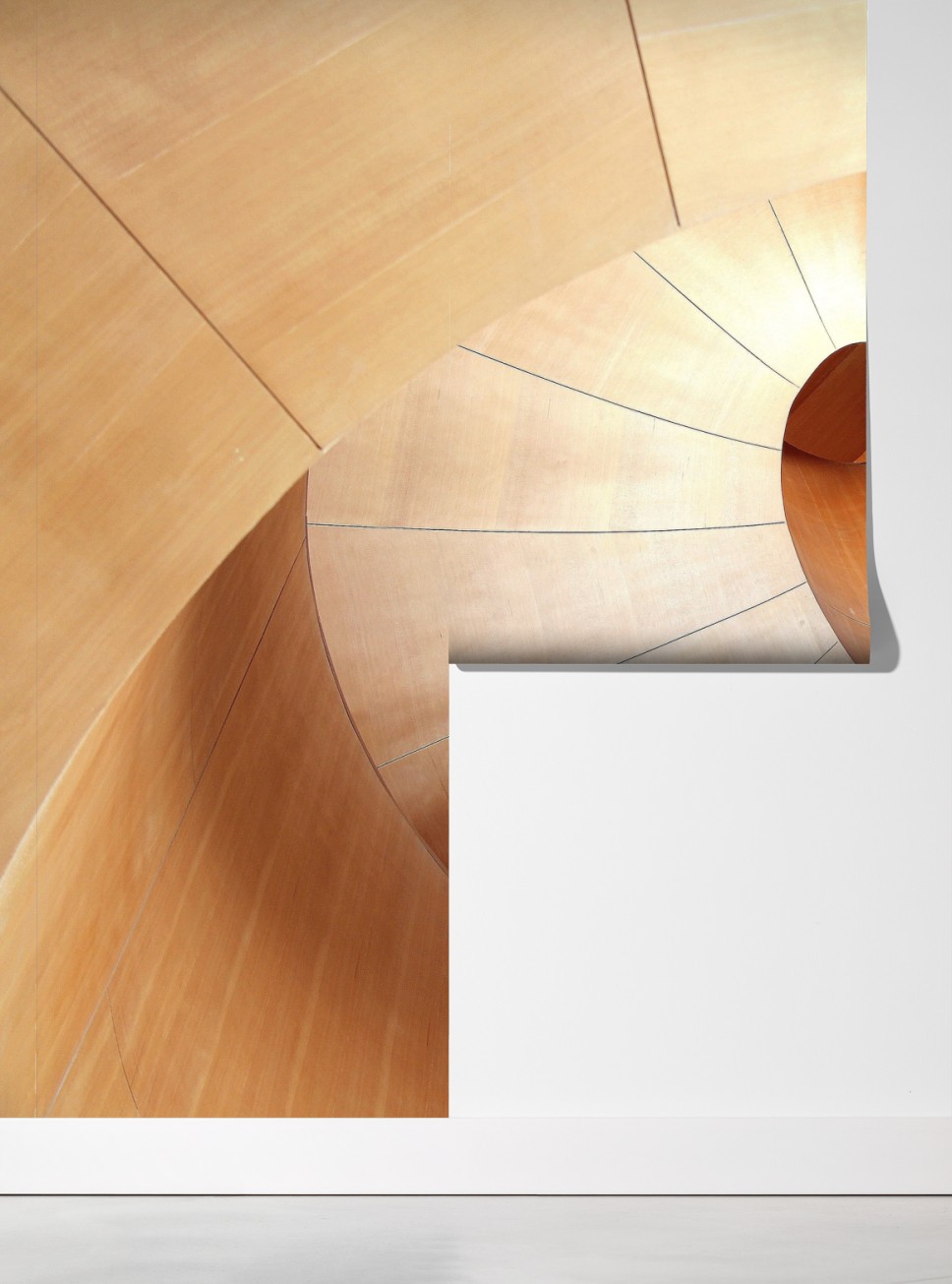 Odkryj kojące abstrakcyjne przedstawienie krzywizn i ciepłych tonów drewna, idealne do nowoczesnych wnętrz.