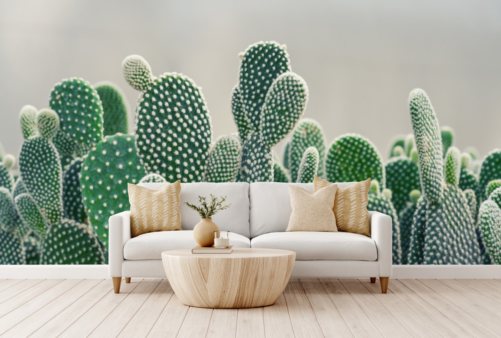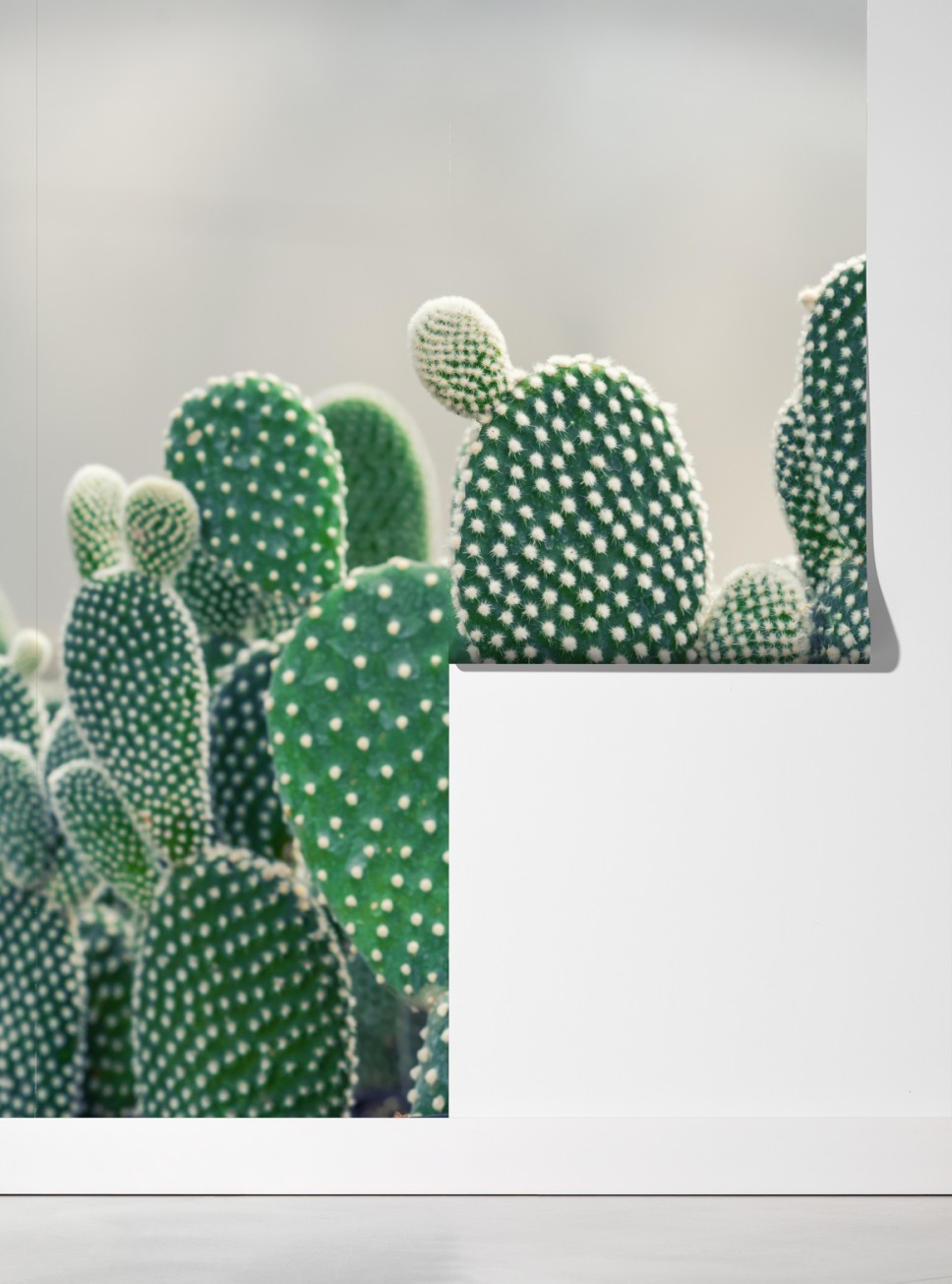 Wprowadź spokojny pustynny klimat do wnętrza dzięki szczegółowemu zbliżeniu opuncji ukazującemu teksturowane listki i stonowane barwy.