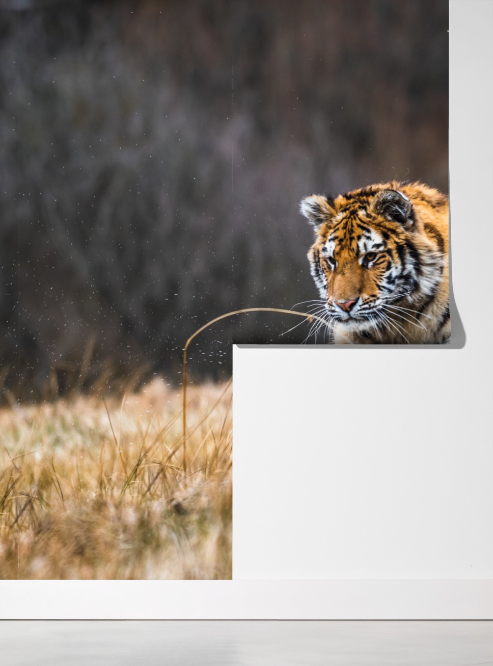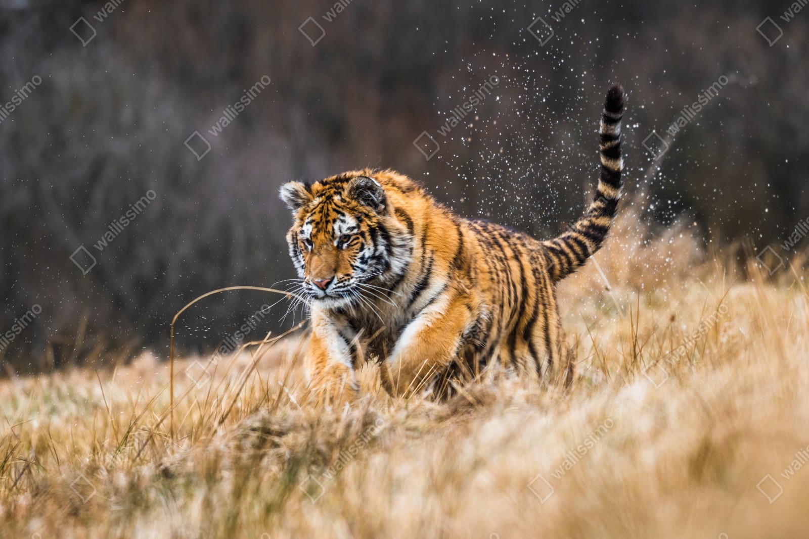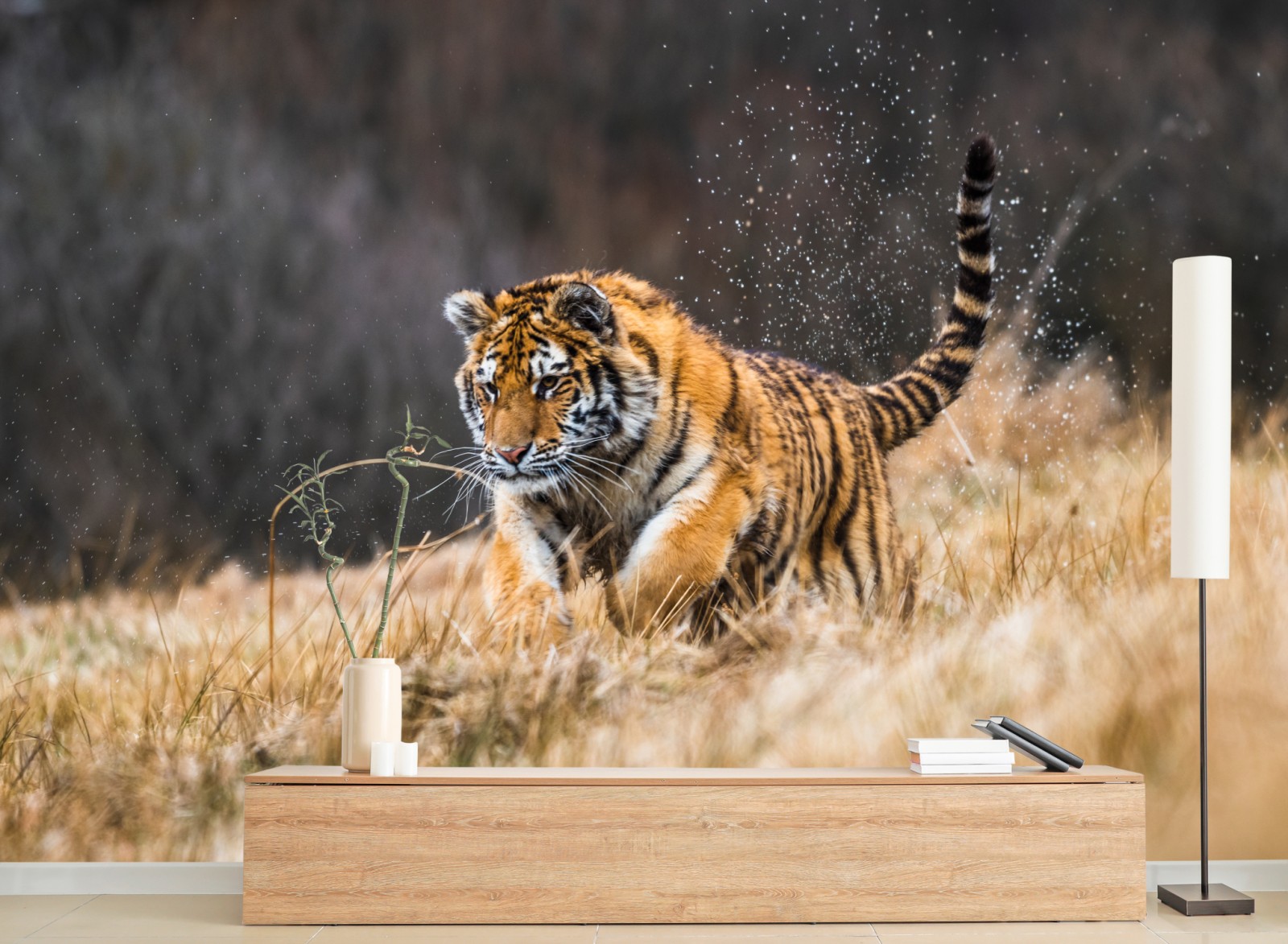 Poczuj surową siłę i grację tygrysa Syberyjskiego uchwyconego w biegu, idealny do wnętrz inspirowanych naturą.