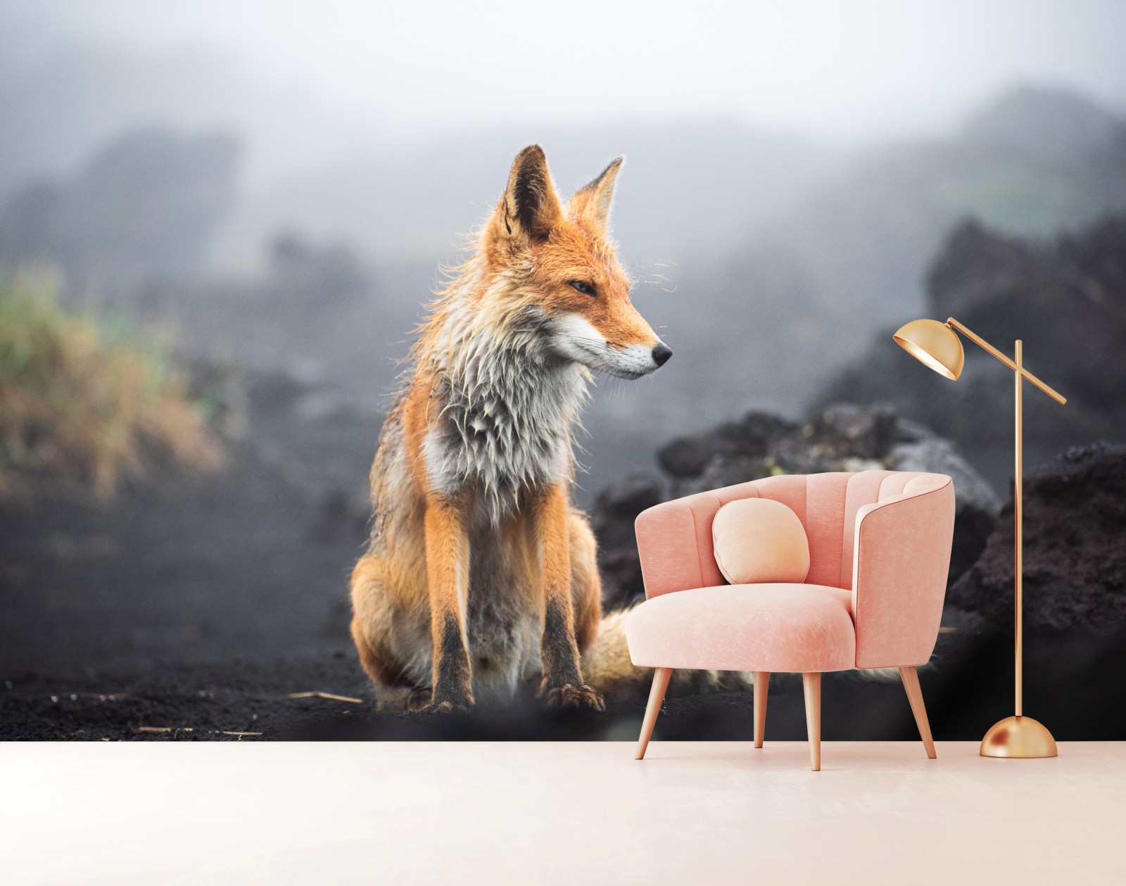 Fototapeta Rudy lis w mglistym krajobrazie