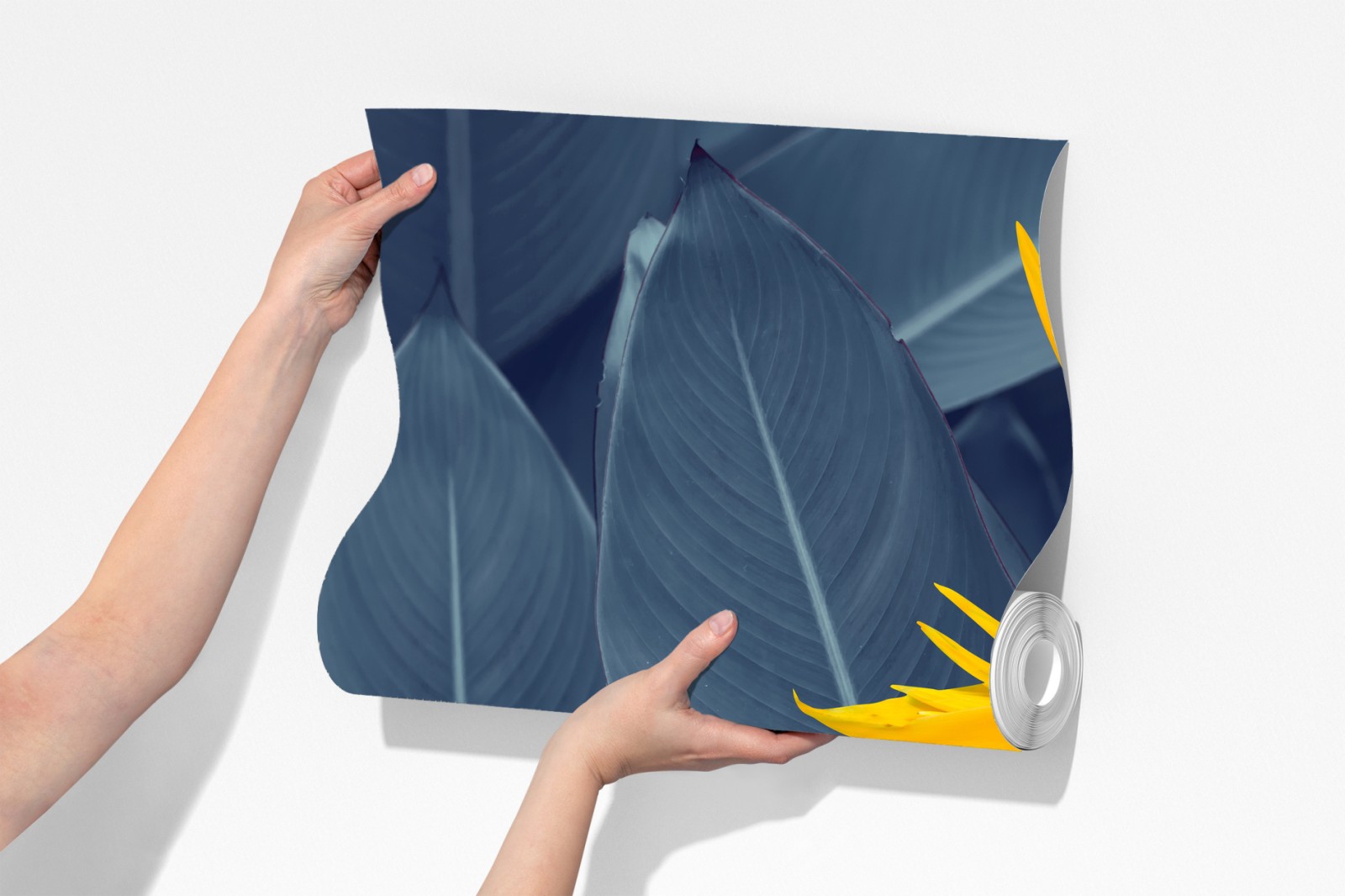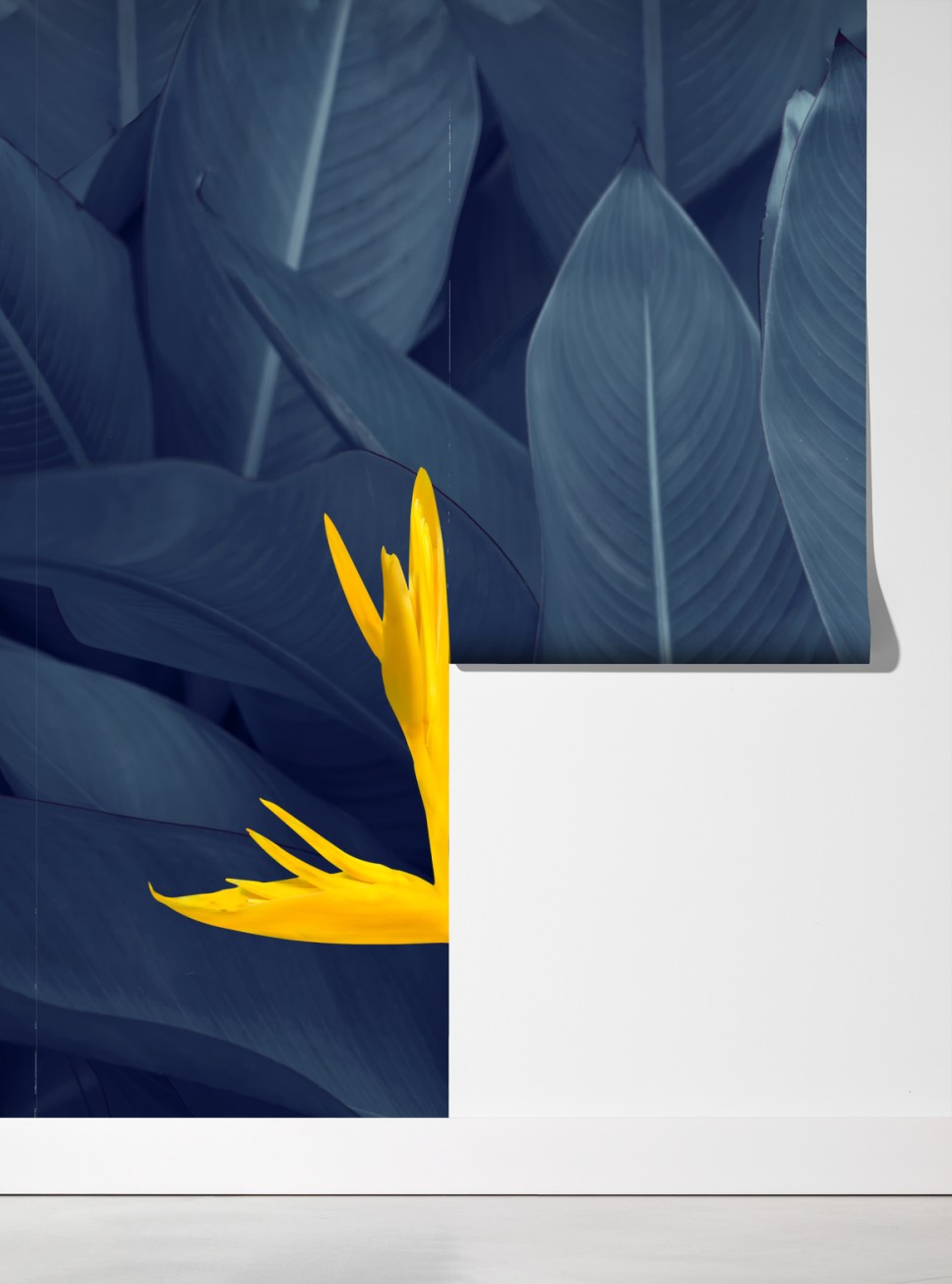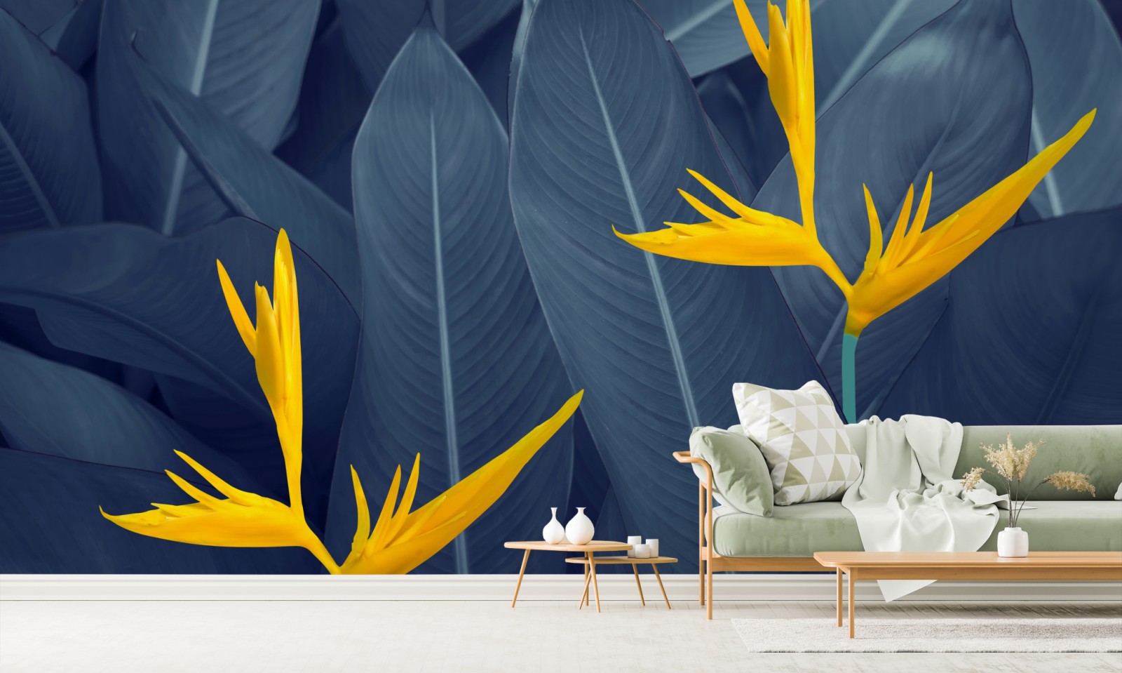 Dodaj tropikalnej elegancji do wnętrza dzięki kontrastującej żółtej strelicji na głębokich, niebieskich liściach.