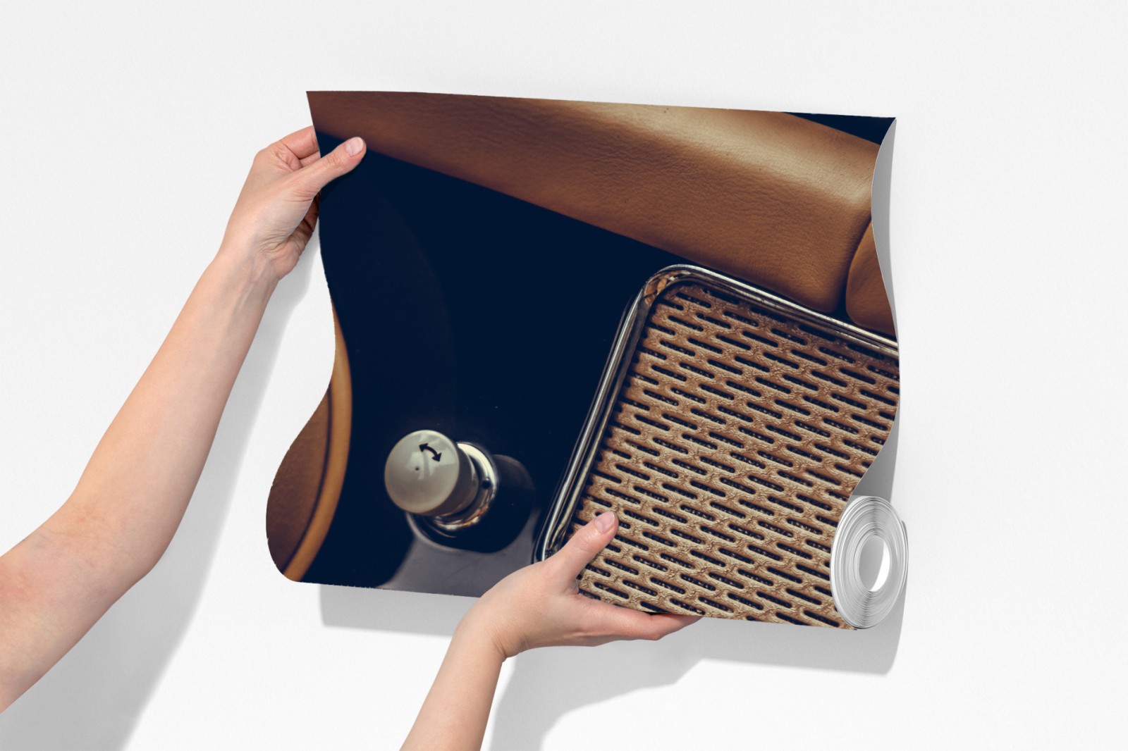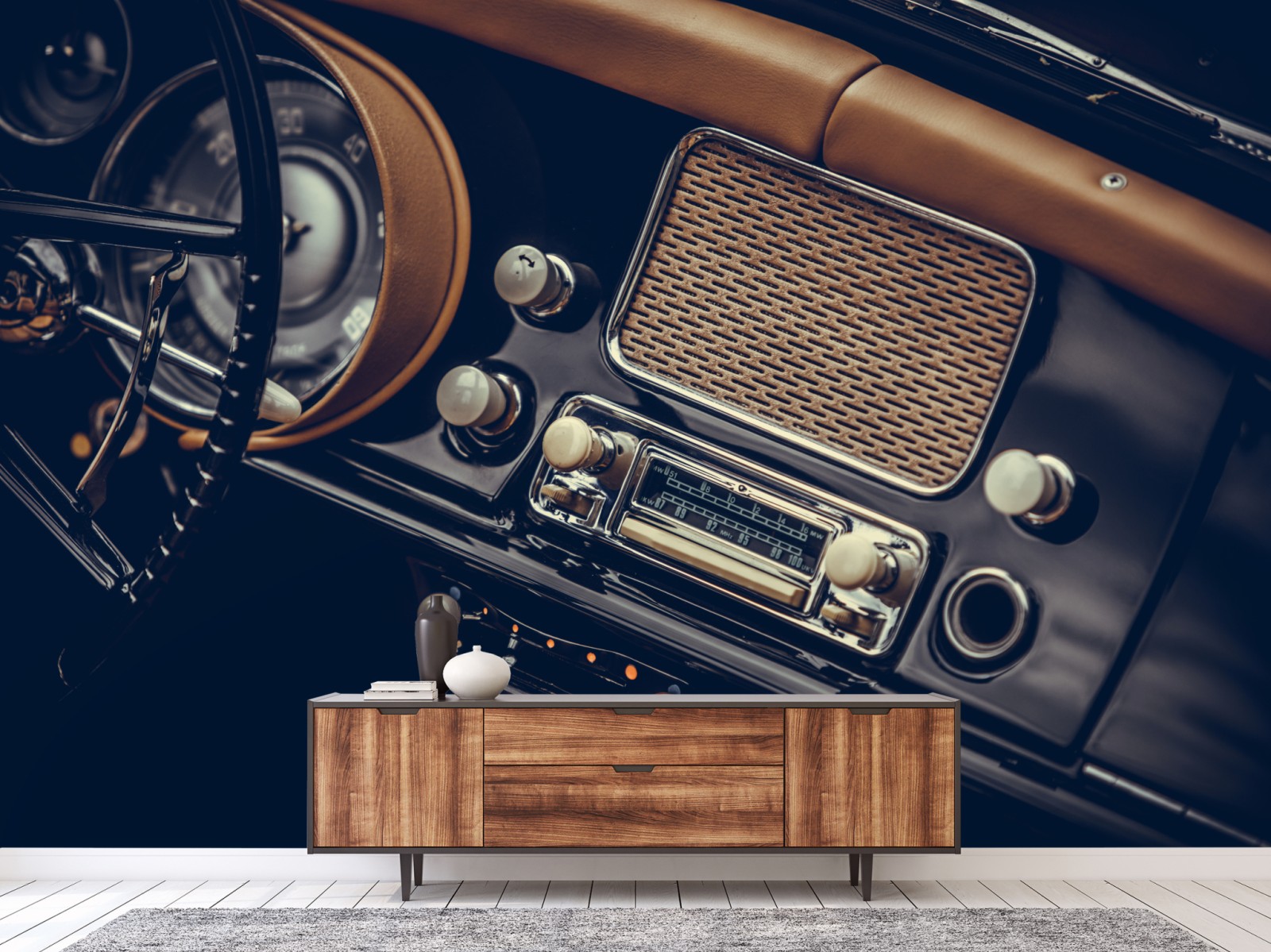 Dodaj klasycznego uroku wnętrzu dzięki temu zbliżeniu zabytkowej deski rozdzielczej z ciepłą skórą i retro radiem.