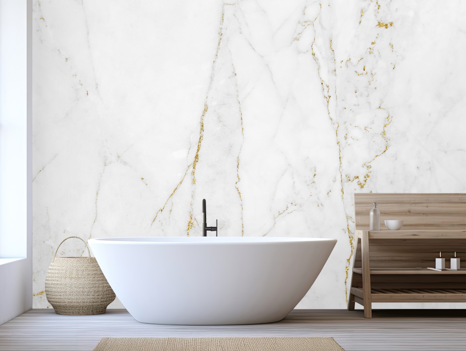 Dodaj elegancji do wnętrza dzięki białemu marmurowi ze subtelnymi złotymi żyłkami.
