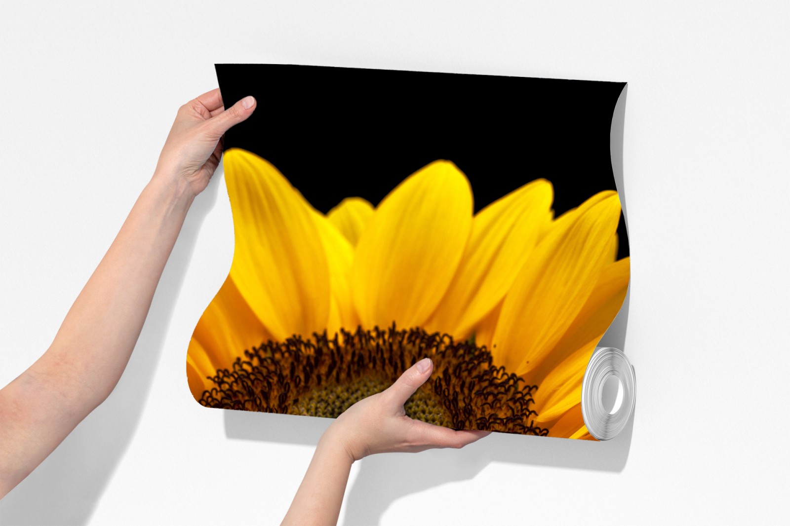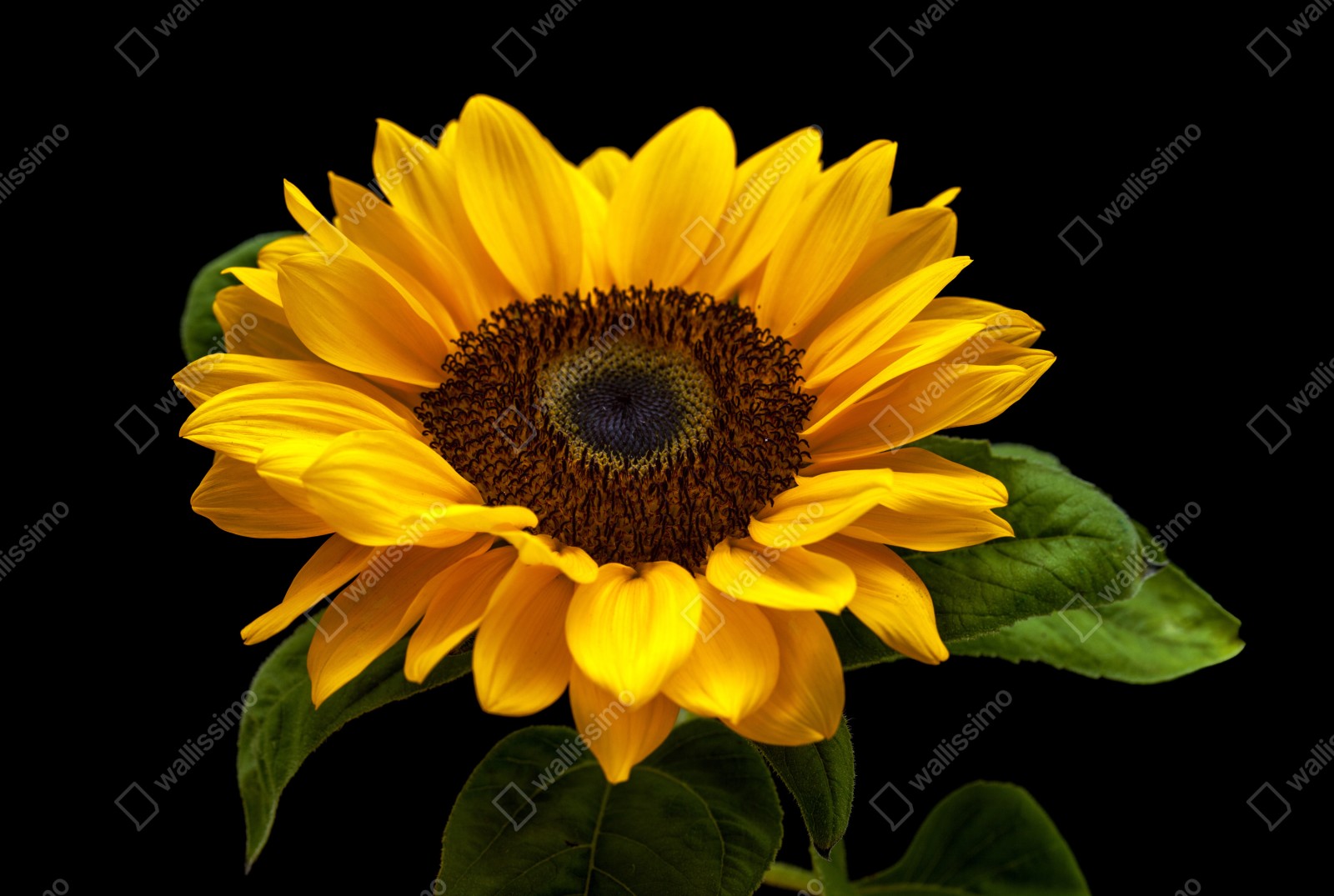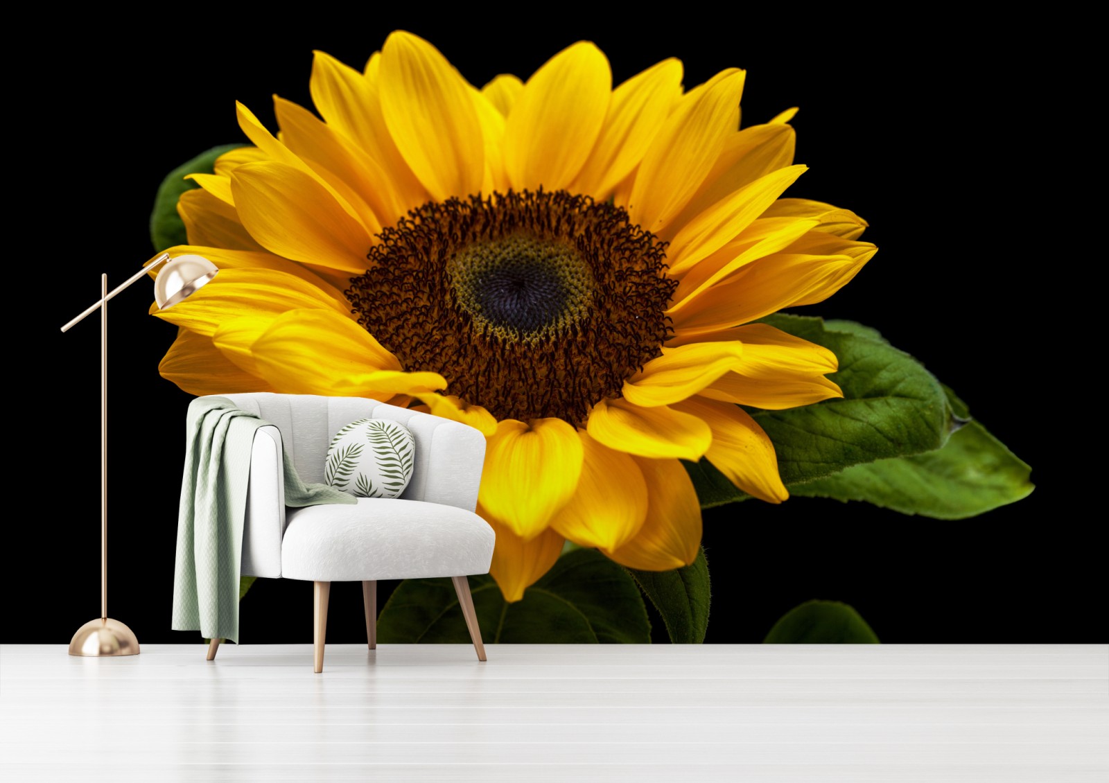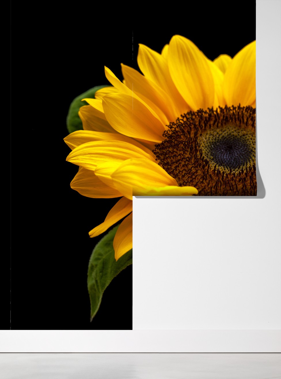 Wprowadź ciepło i naturalne piękno do wnętrza dzięki żywemu słonecznikowi uchwyconemu na dramatycznym czarnym tle.