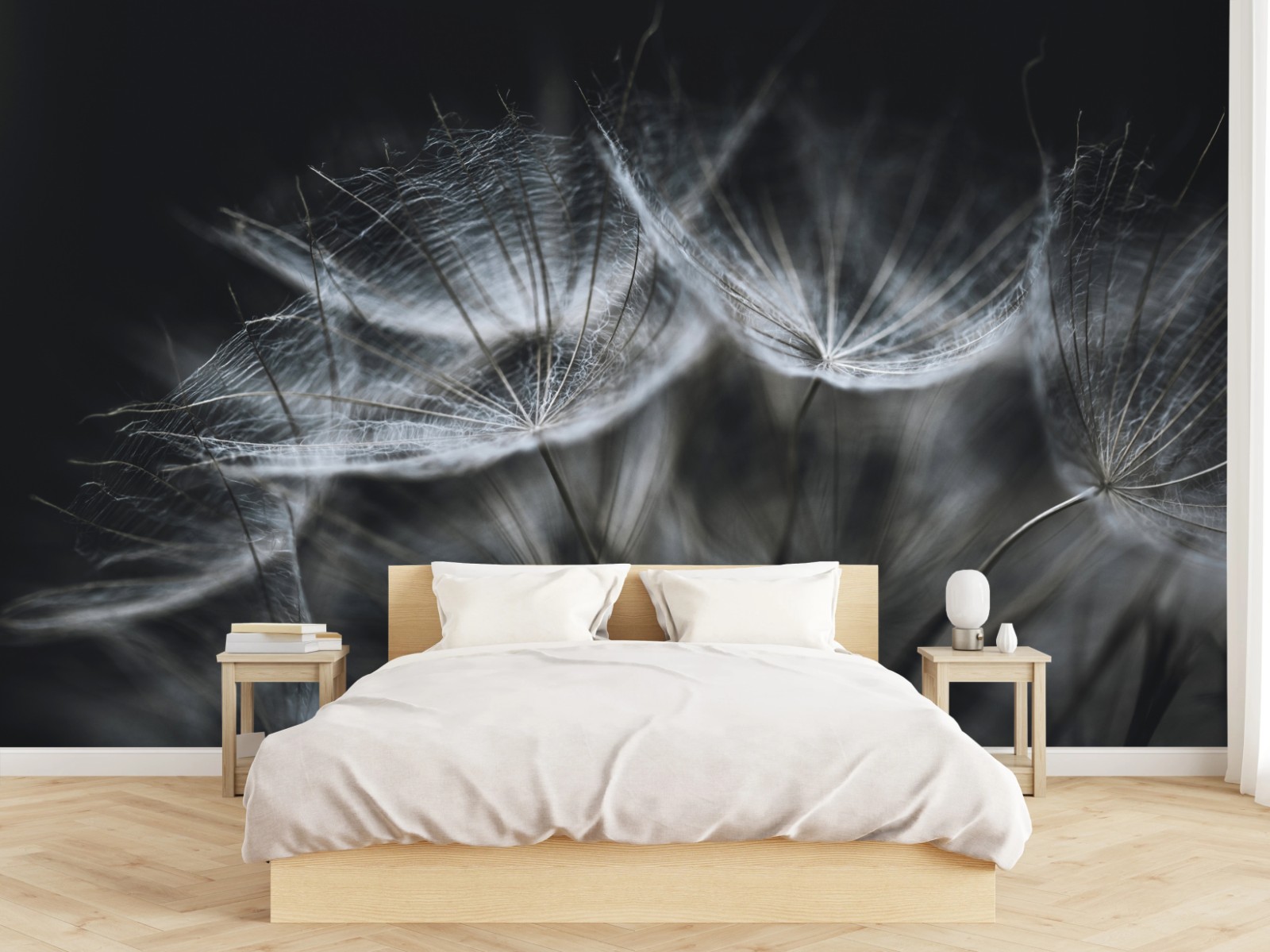 Fototapeta Delikatne nasiona mniszka w monochromie