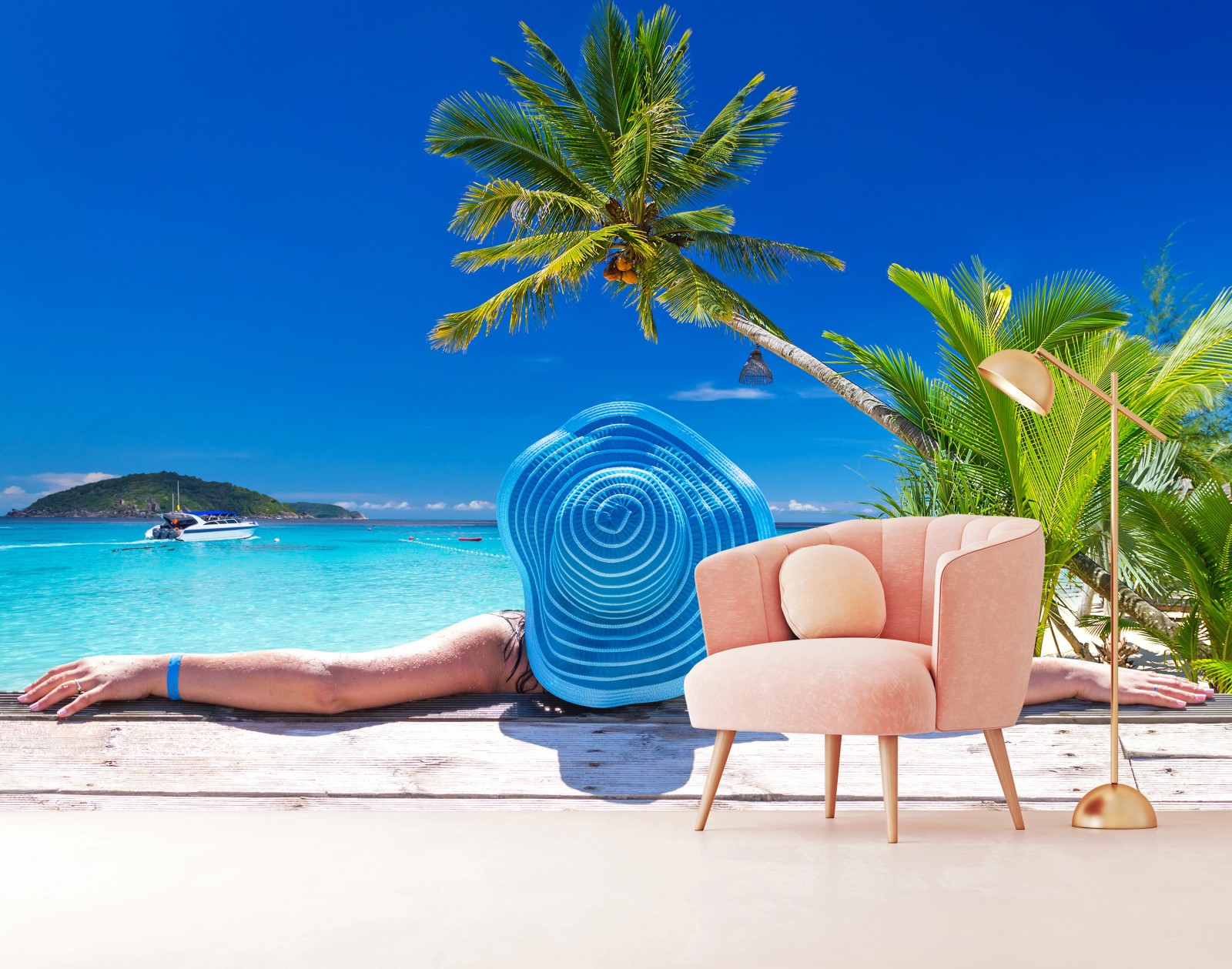Fototapeta Tropikalna plaża z niebieskim kapeluszem