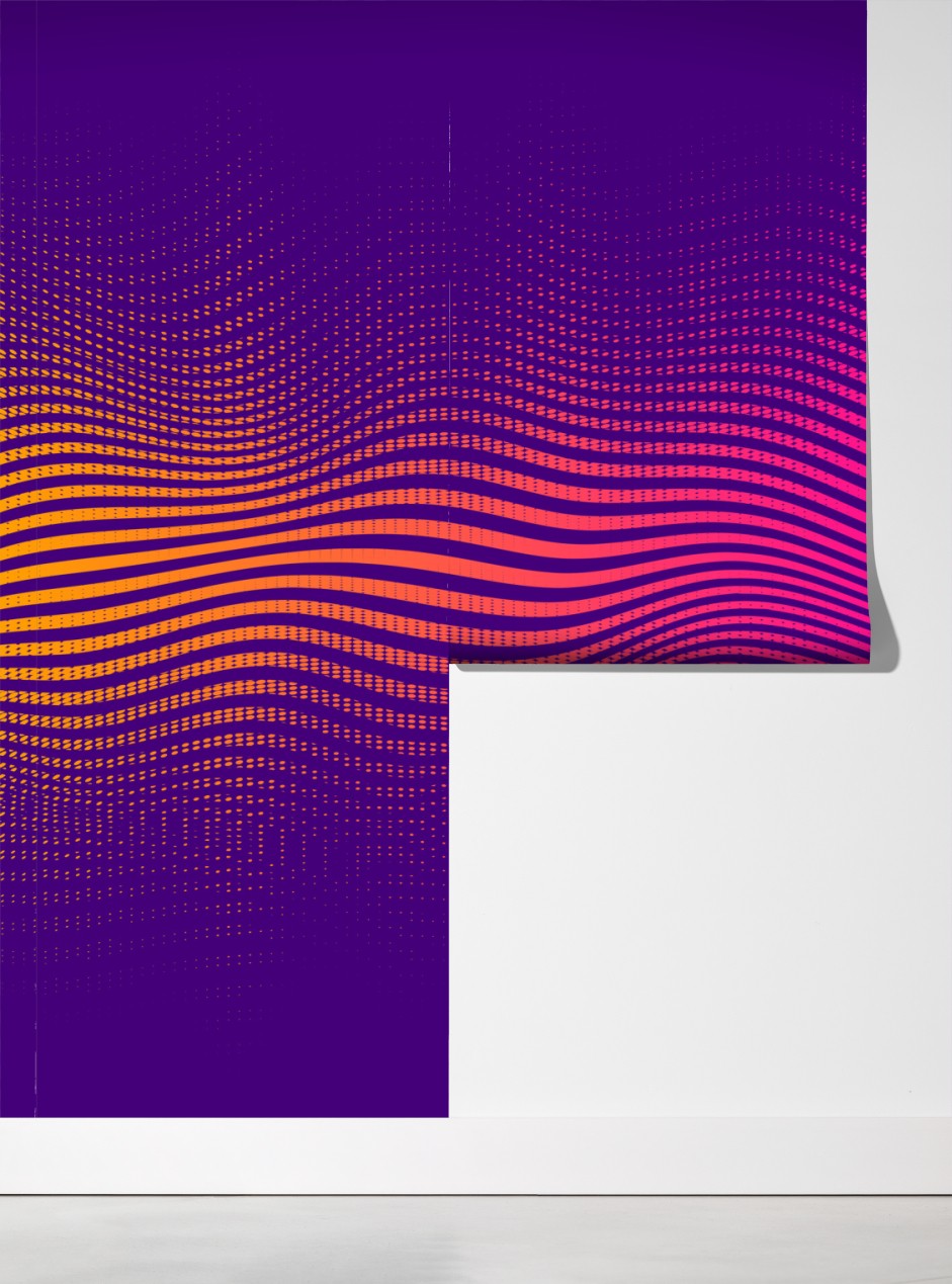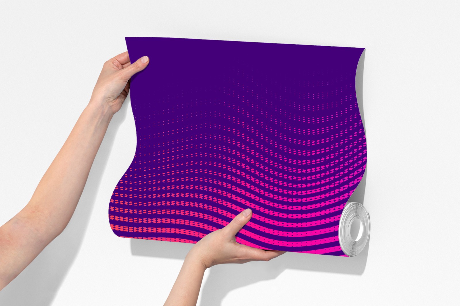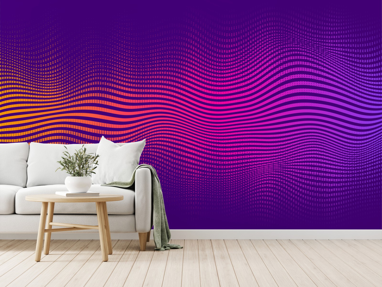 Ożyw swoje wnętrze dzięki żywemu abstrakcyjnemu gradientowi fal w głębokich odcieniach fioletu, różu i pomarańczy, idealnemu do dodania nowoczesnego akcentu kolorystycznego.