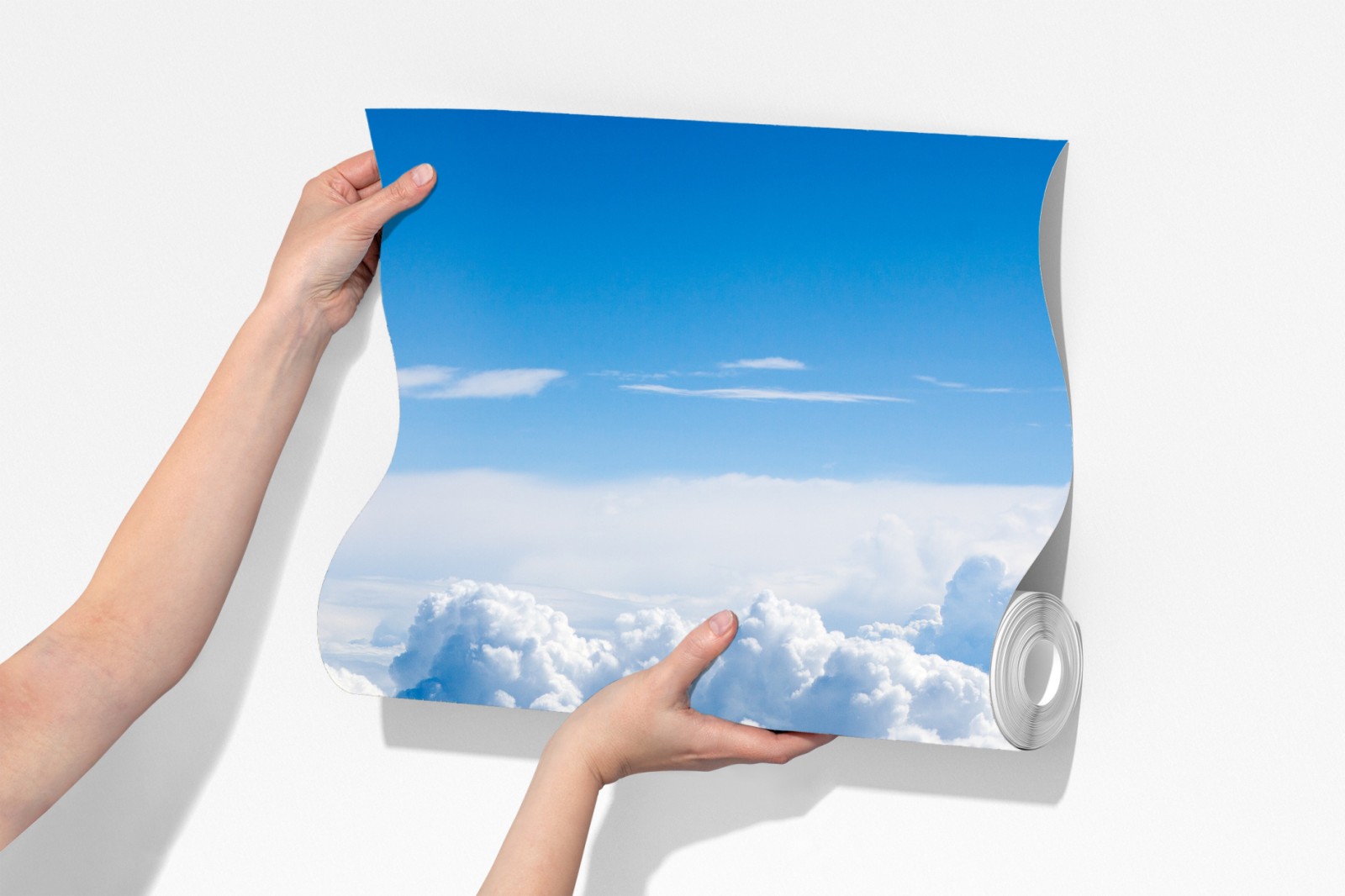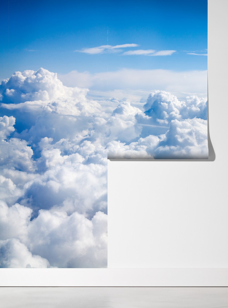 Wprowadź spokój do wnętrza dzięki temu spokojnemu pejzażowi chmur i jasnemu niebu.