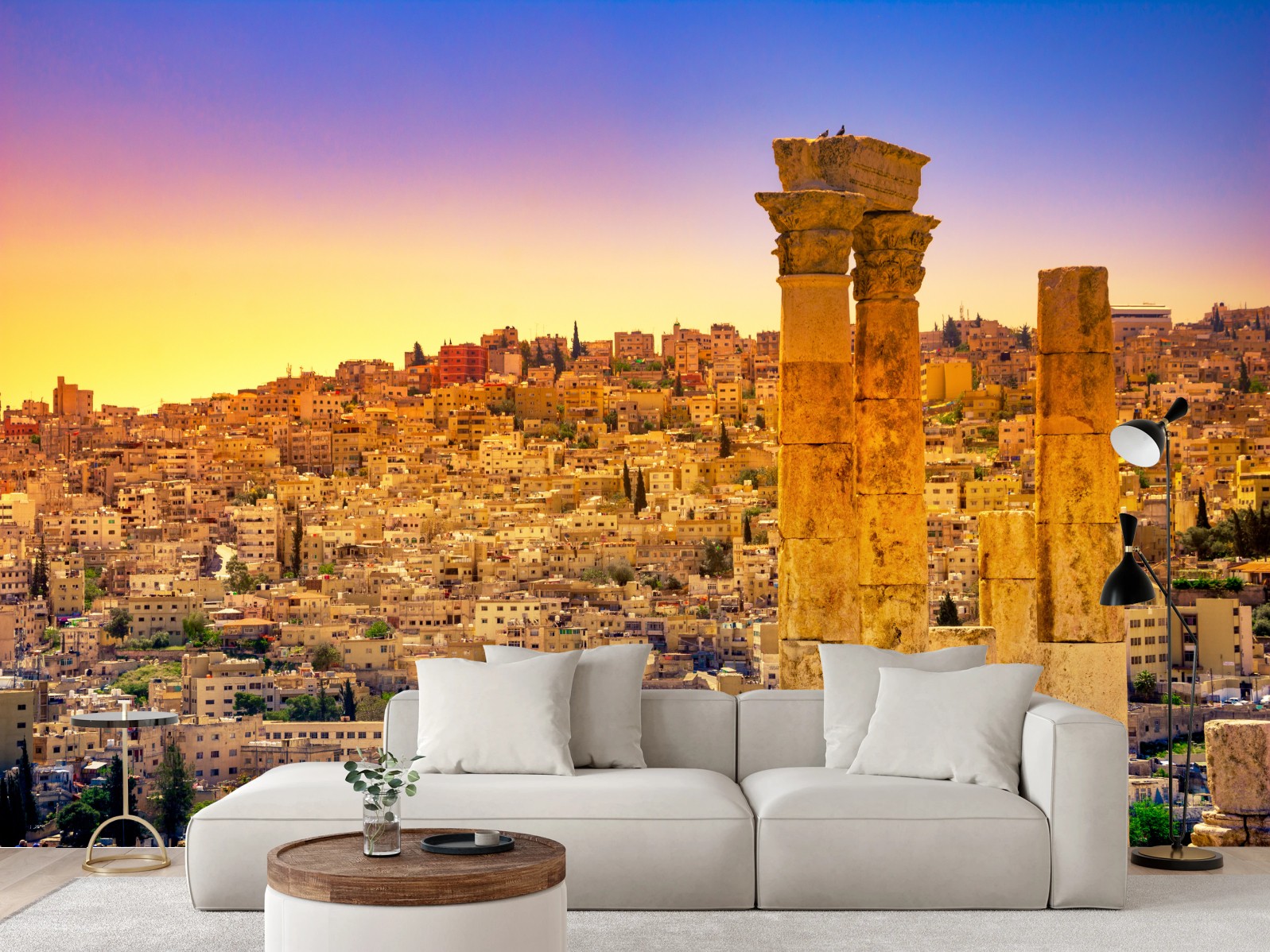 Fototapeta Złota panorama Ammanu z antycznymi kolumnami