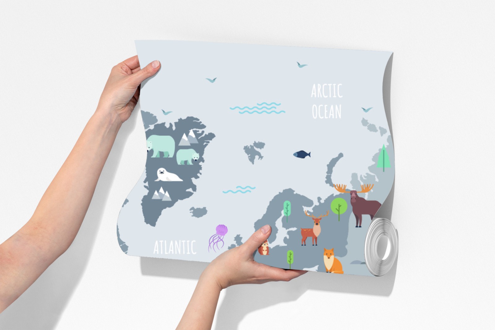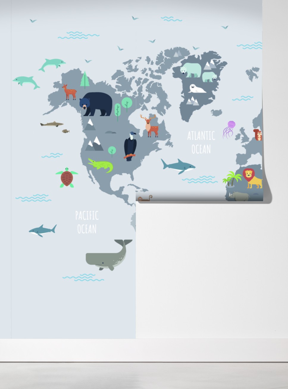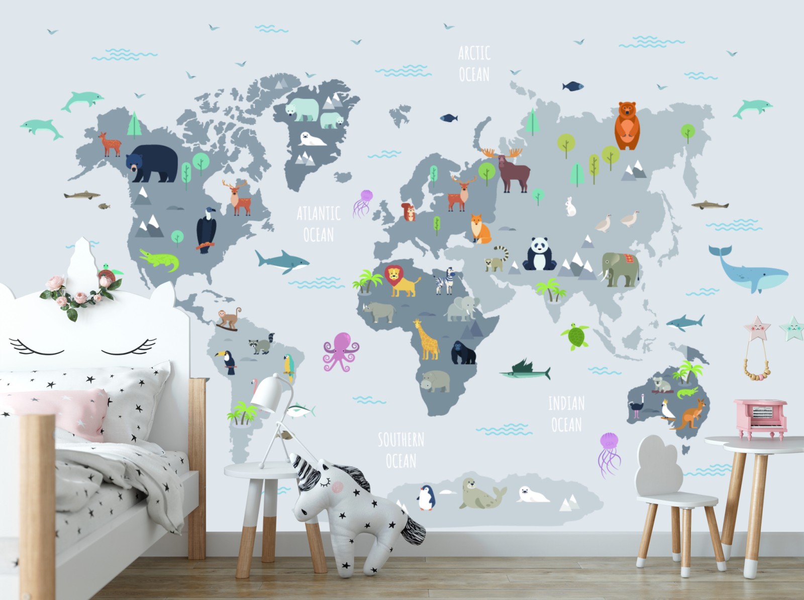 Odkryj uroczą pastelową mapę świata ze zwierzętami, która ożywia geografię dla dzieci i dodaje radości każdemu wnętrzu.