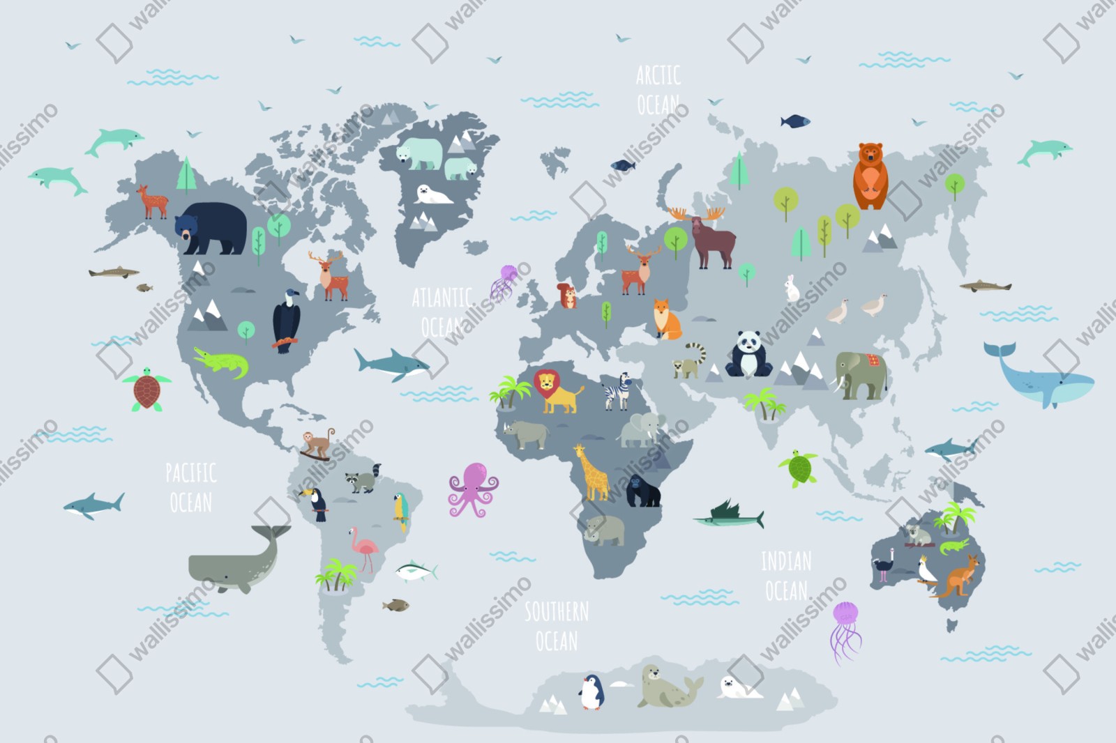 Fototapeta Mapa świata ze zwierzętami w pastelowych kolorach