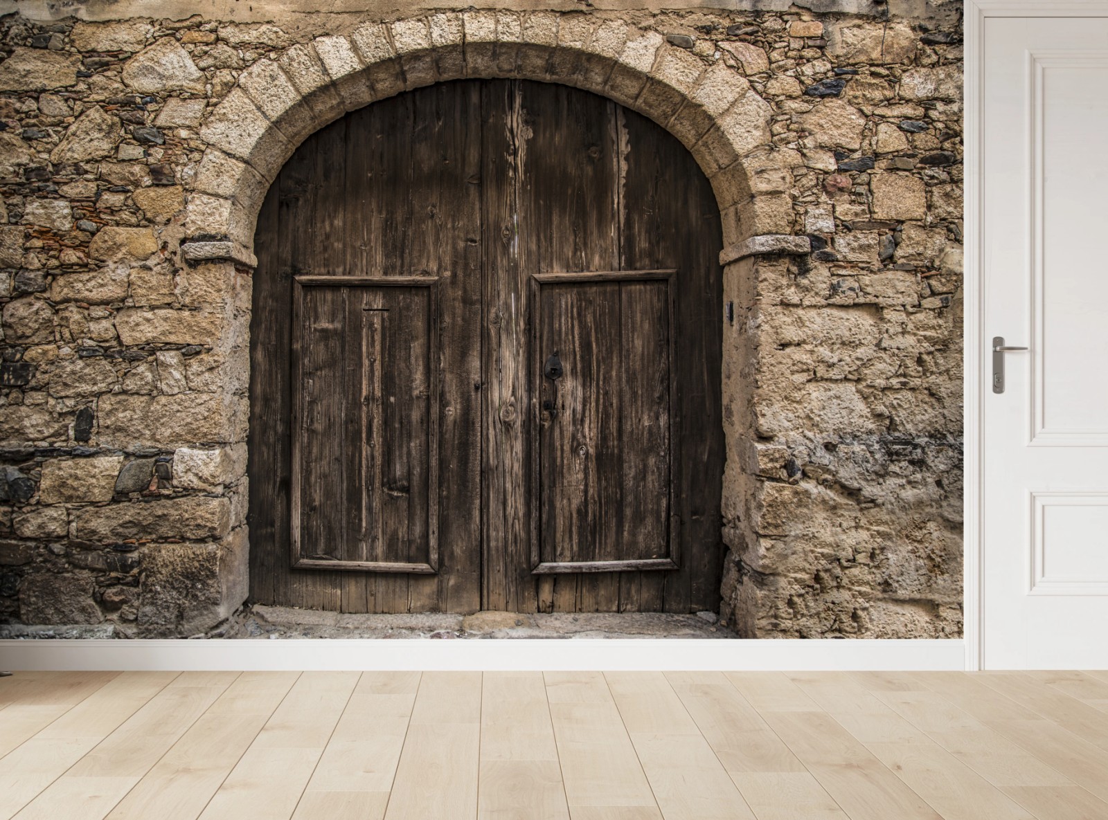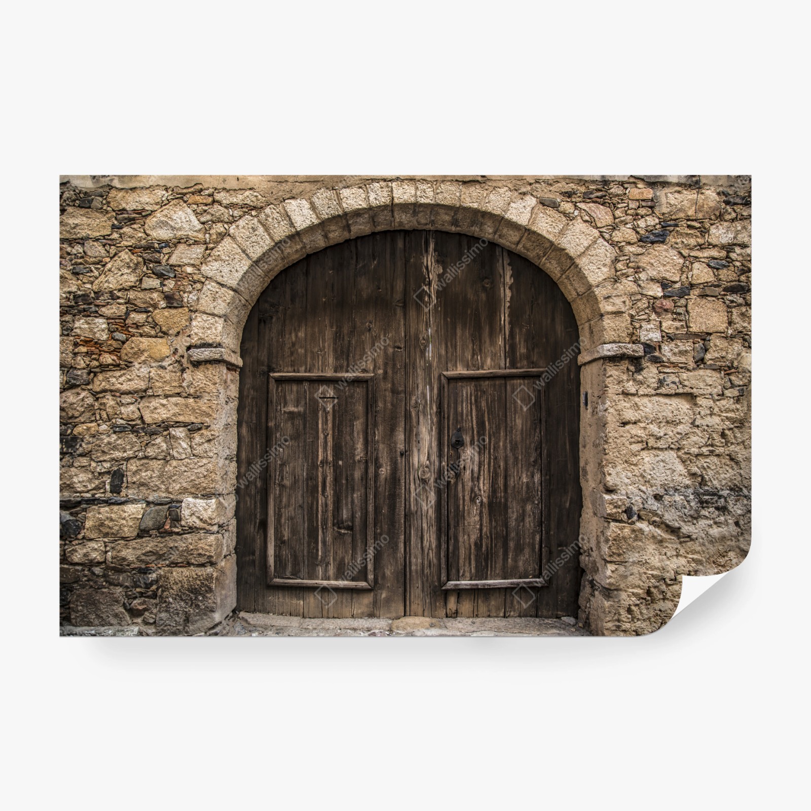 Fototapeta Rustykalne drewniane drzwi w kamiennym łuku