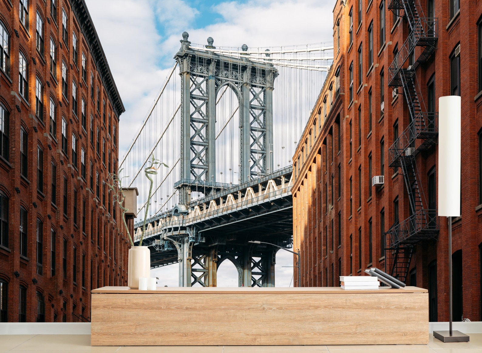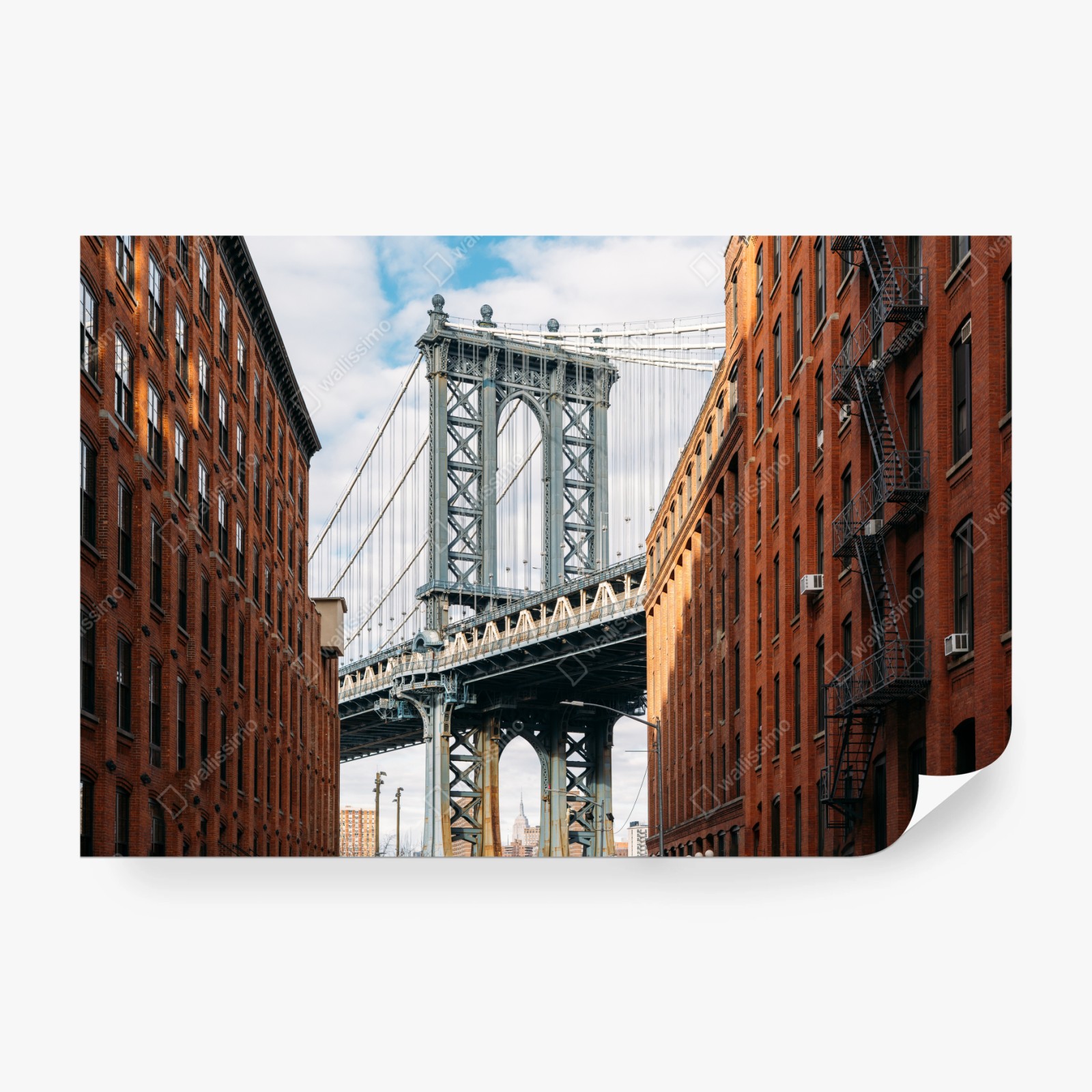 Fototapeta Brooklyn widok mostu między ceglanymi budynkami
