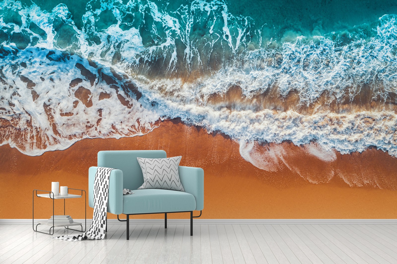 Fototapeta Lotnicze ujęcie turkusowych fal na piaszczystej plaży