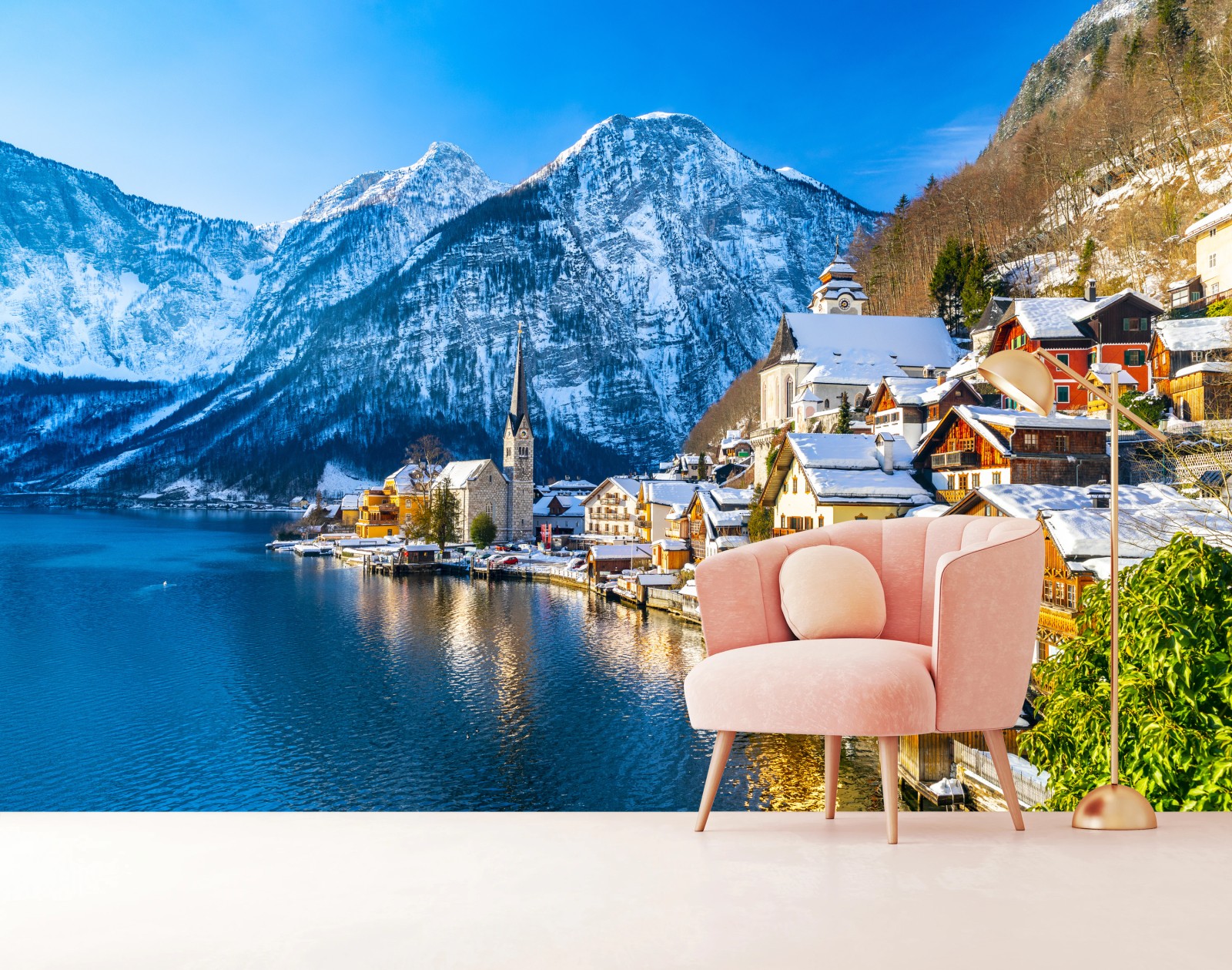 Fototapeta Zimowy spokój w Hallstatt — alpejska wioska nad jeziorem