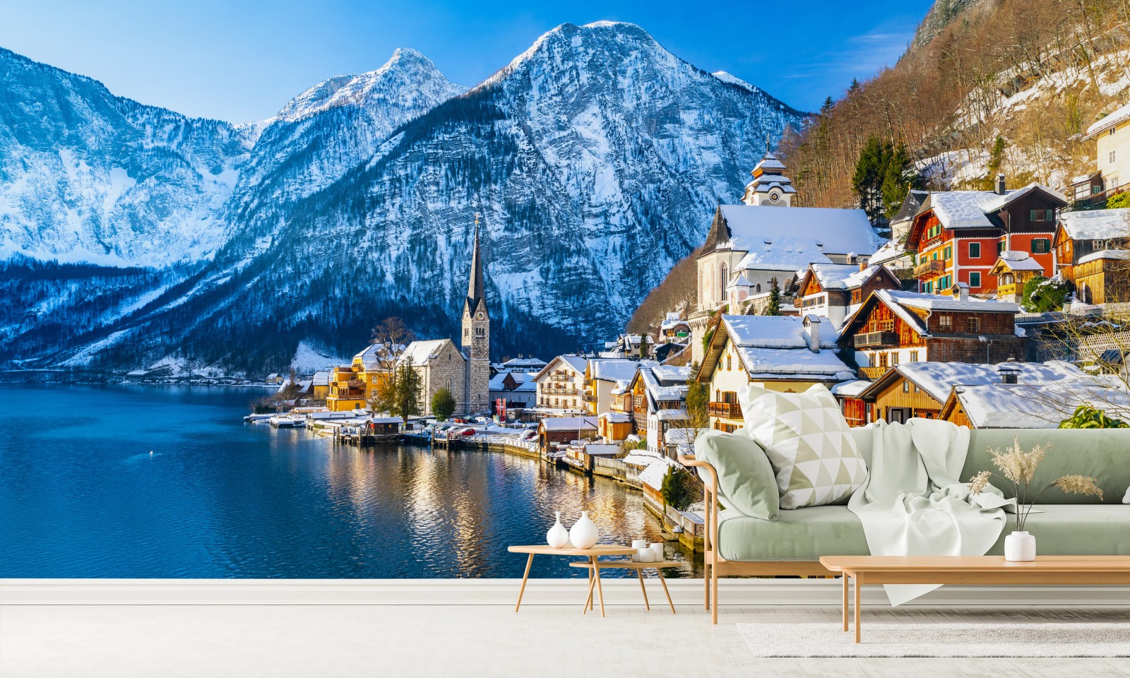 Fototapeta Zimowy spokój w Hallstatt — alpejska wioska nad jeziorem