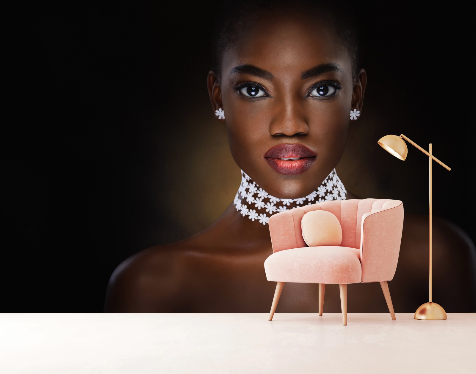 Fototapeta Elegancki portret kobiety z kwiatową kolią