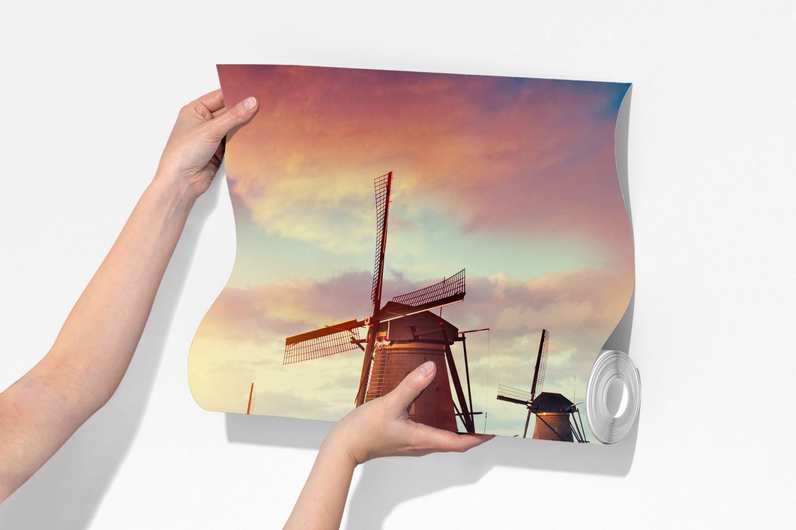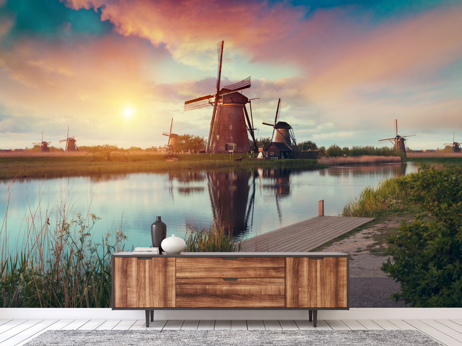 Fototapeta Zachód słońca nad wiatrakami w Holandii