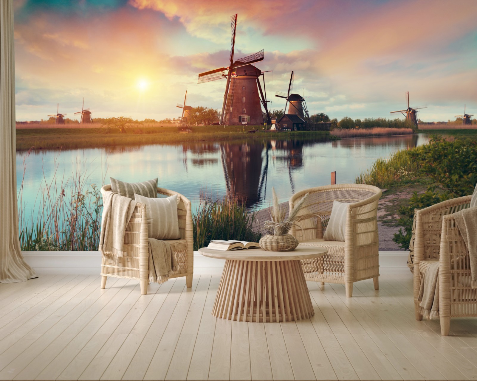 Fototapeta Zachód słońca nad wiatrakami w Holandii