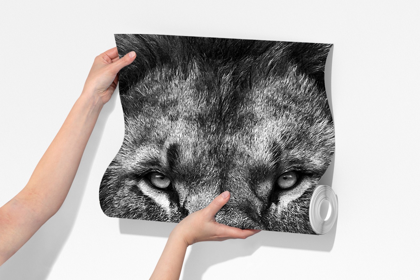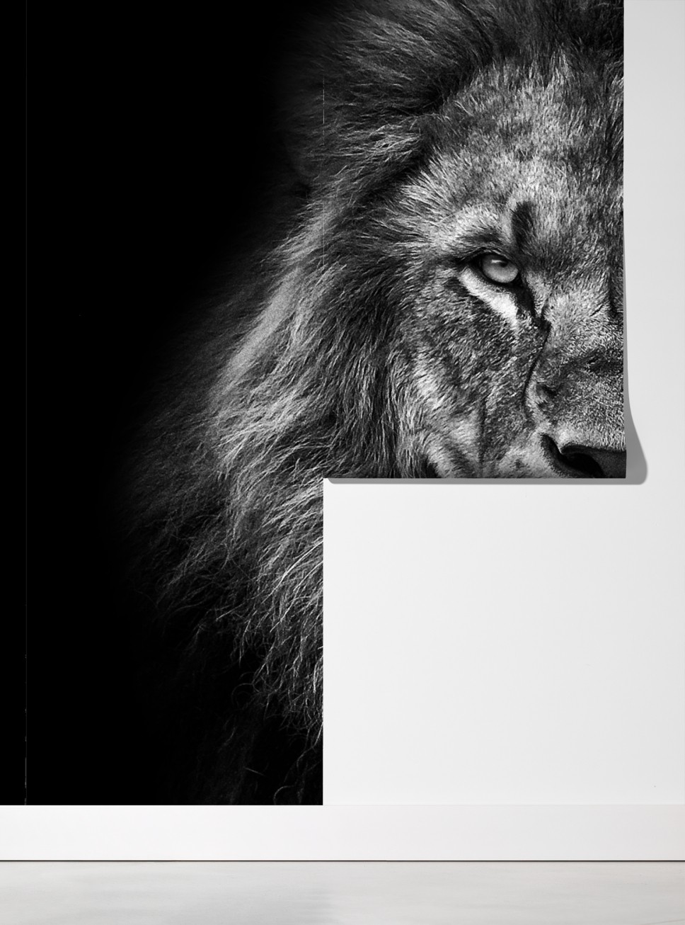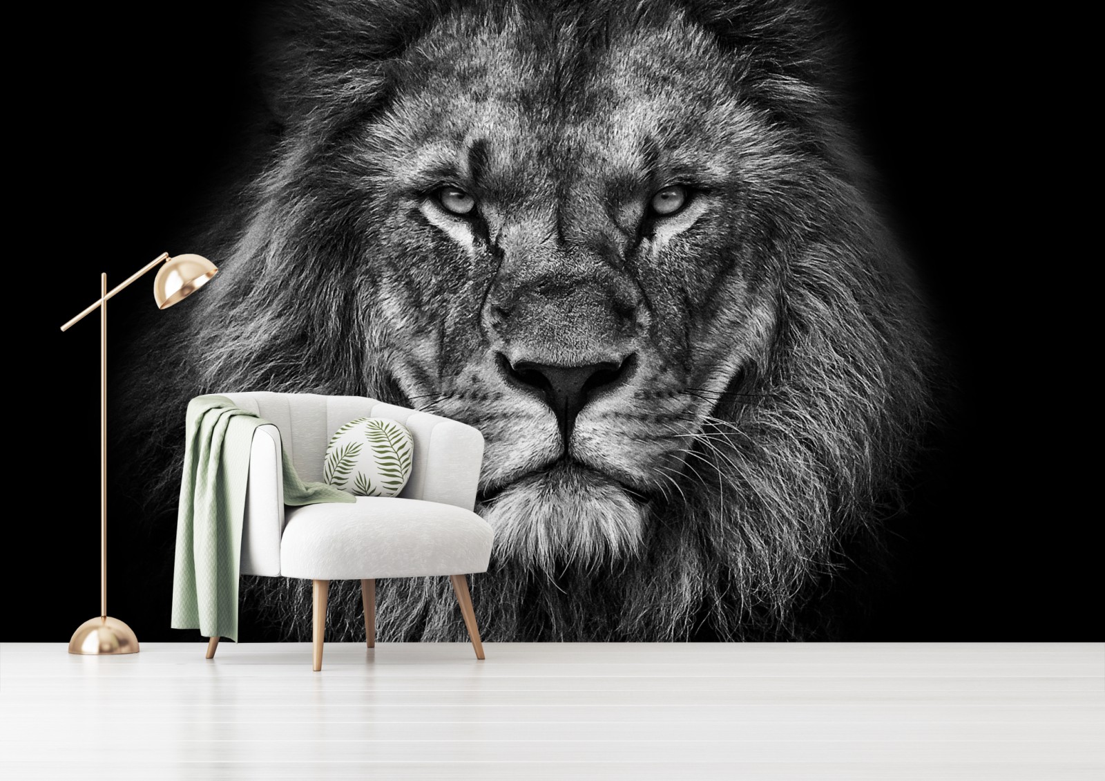 Dodaj dramatycznej elegancji do wnętrza dzięki temu wyrazistemu, czarno-białemu portretowi lwa idealnemu do nowoczesnych przestrzeni.