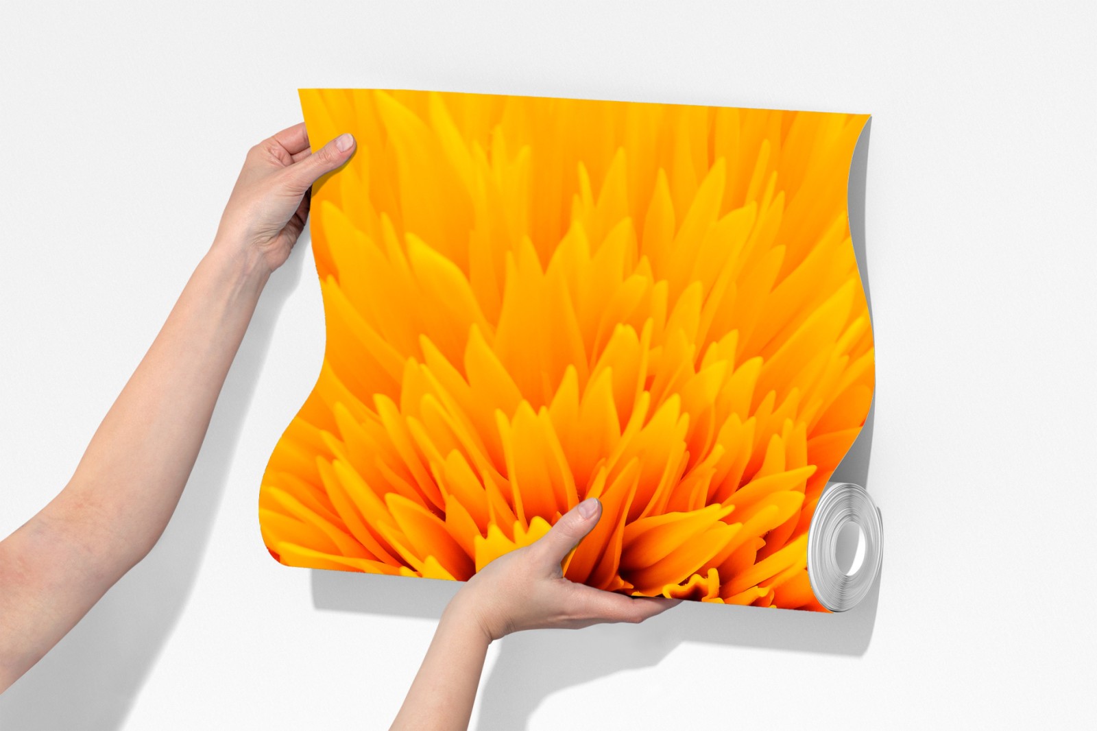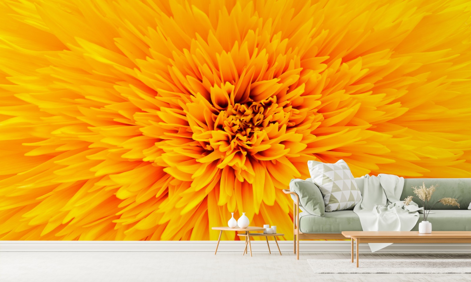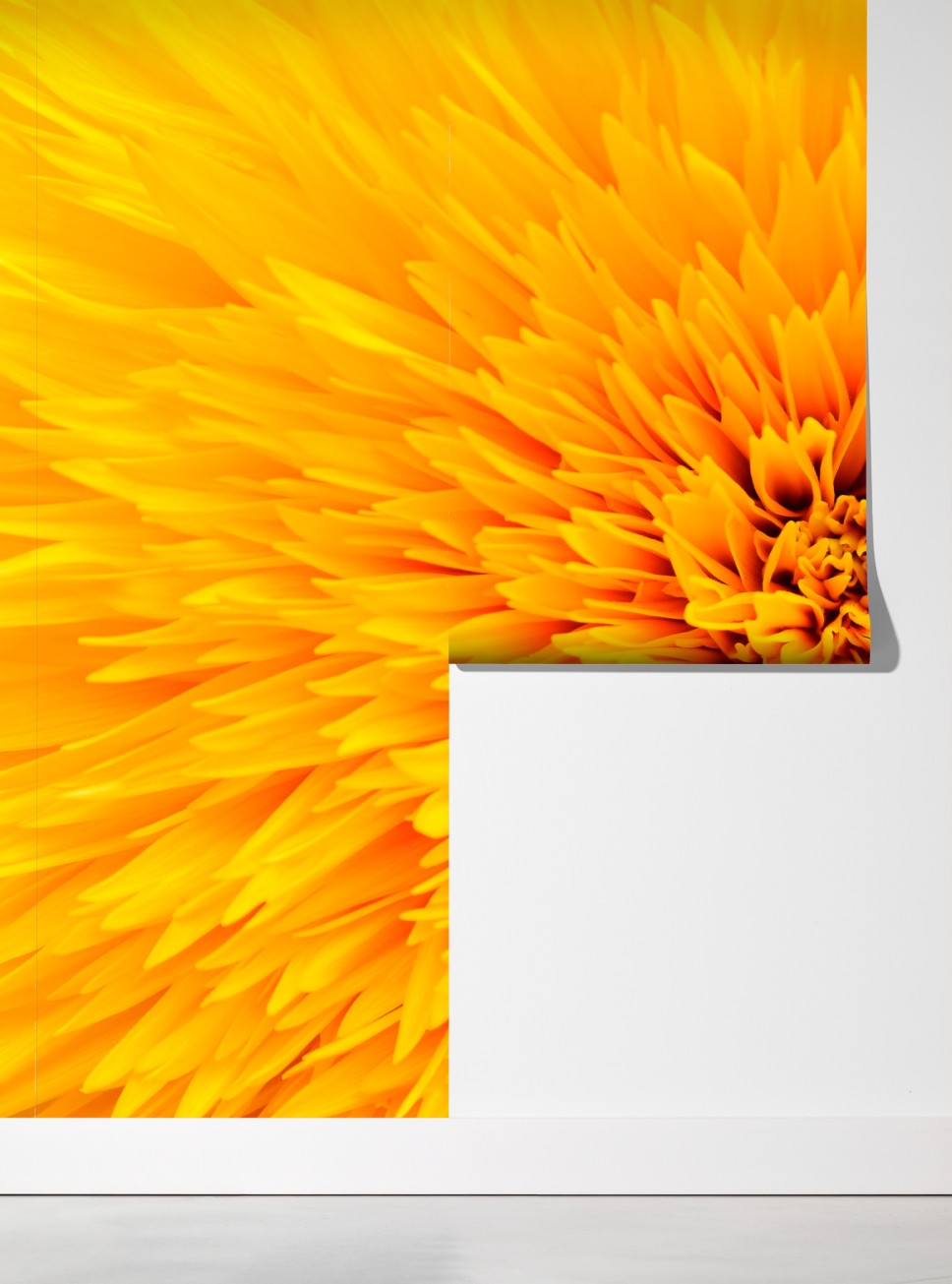 Dodaj ciepłą, żywą energię do wnętrza dzięki temu promiennemu zbliżeniu na płatki słonecznika, idealnemu do wprowadzenia koloru i naturalnej faktury.