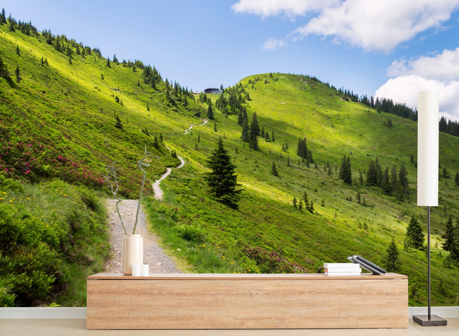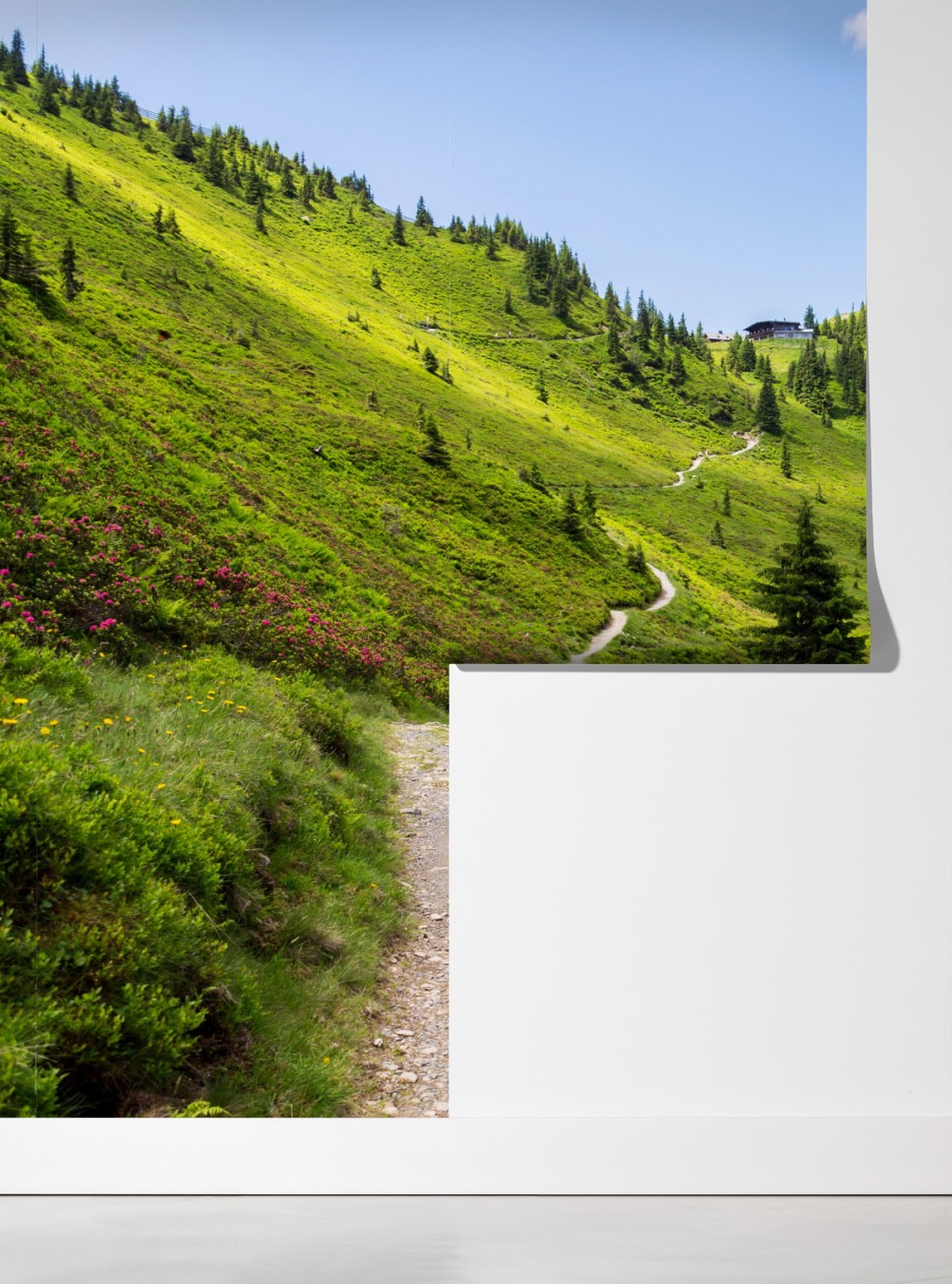 Wprowadź spokój słonecznych górskich szlaków do swojego wnętrza dzięki temu żywemu krajobrazowi.