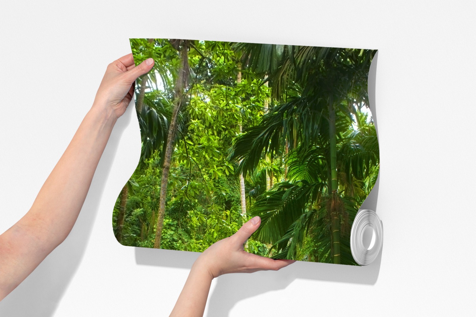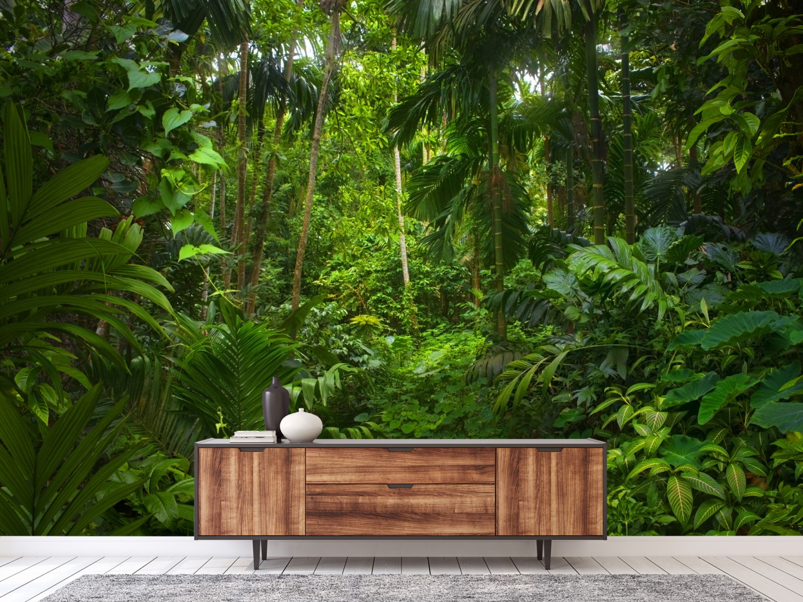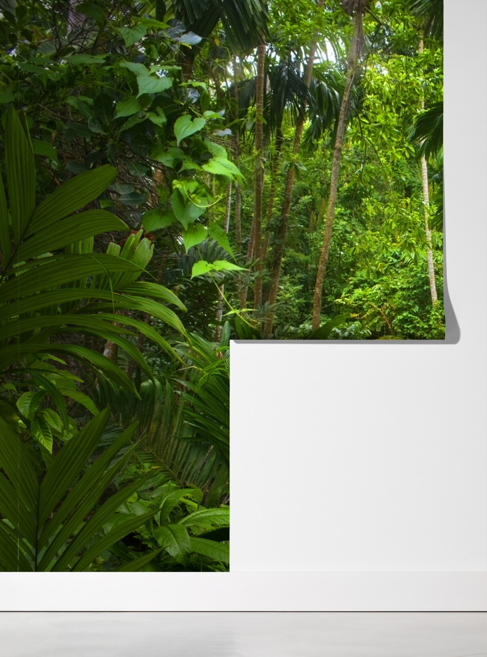 Wprowadź uspokajającą energię bujnej tropikalnej dżungli do swojego wnętrza dzięki intensywnej zieleni i gęstej roślinności, które inspirują relaks i bliskość z naturą.