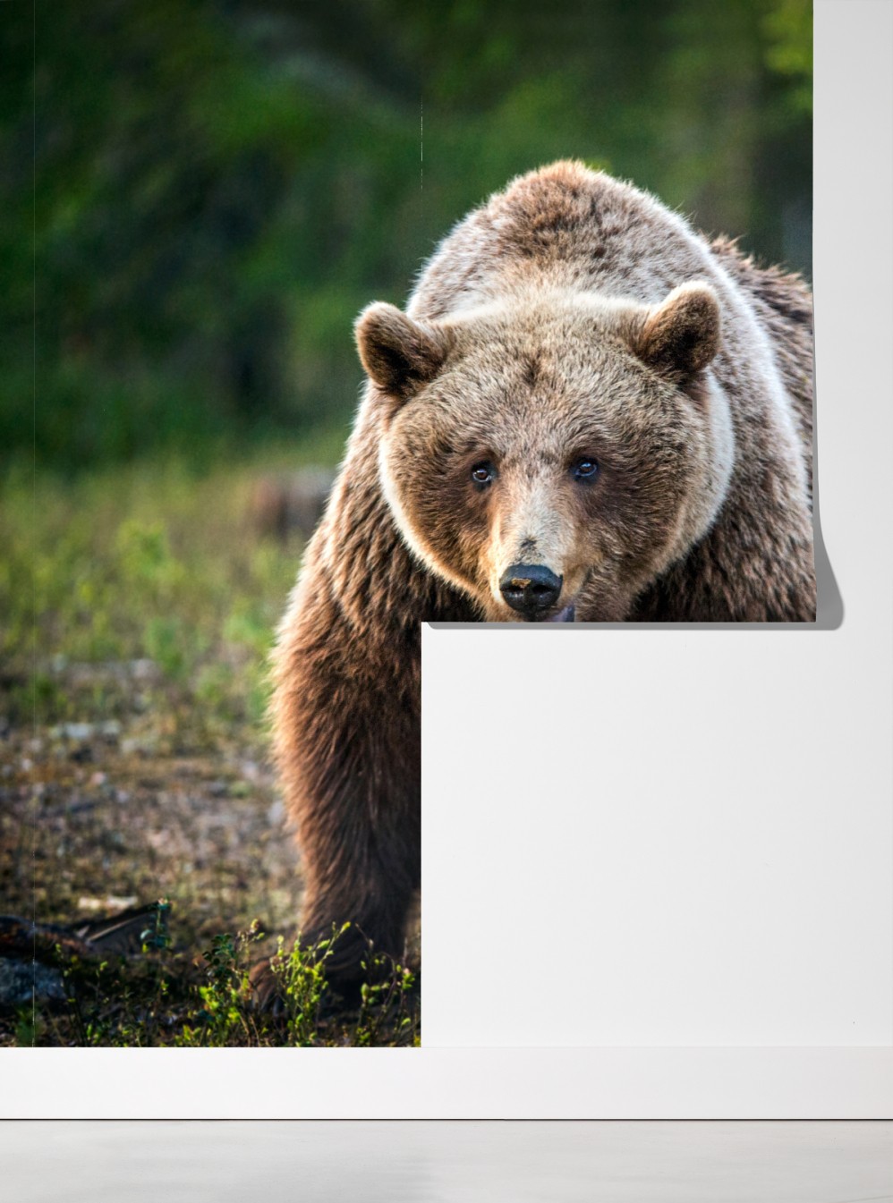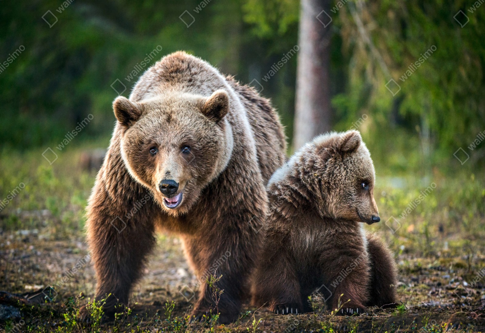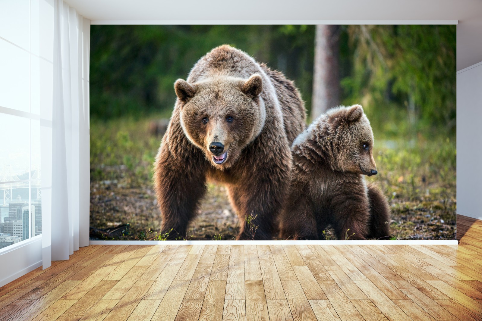 Wprowadź do wnętrza dziką urodę dzięki zdjęciu niedźwiedziej matki z młodym w letnim lesie.