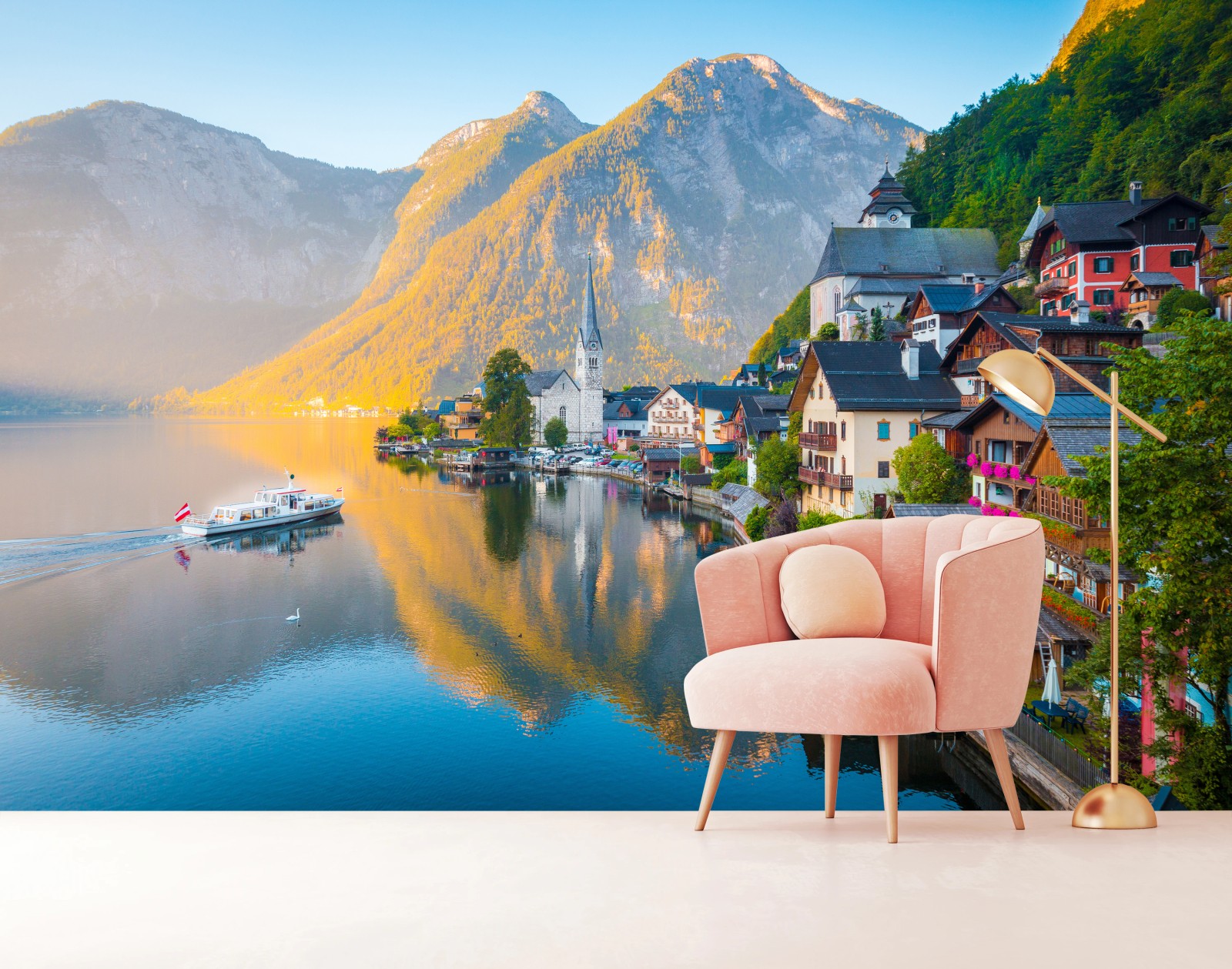 Fototapeta Poranny blask Hallstatt nad jeziorem