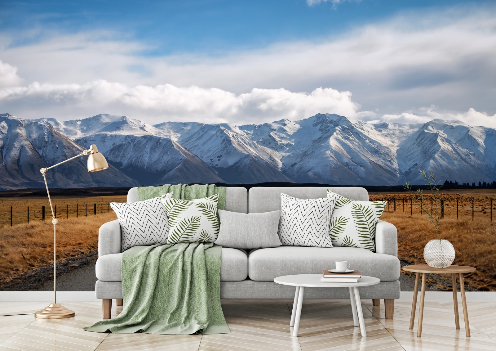 Fototapeta Droga prowadząca do ośnieżonych gór, Nowa Zelandia