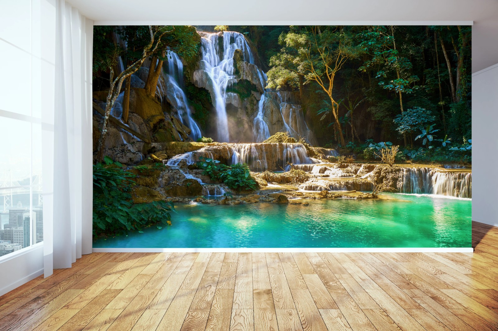 Fototapeta Turkusowy wodospad w bujnym lesie