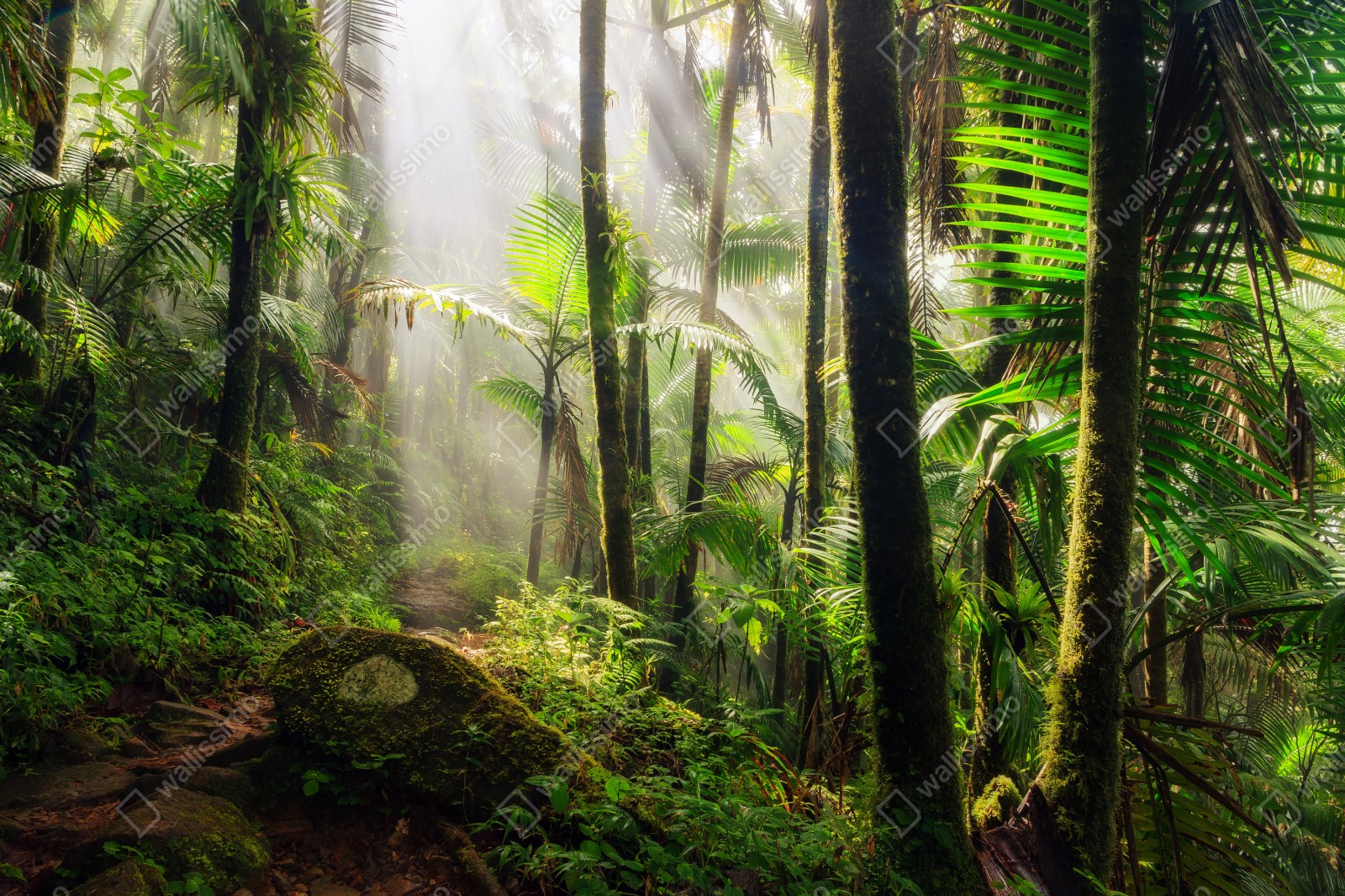 Fototapeta Tropikalny las deszczowy z promieniami słońca
