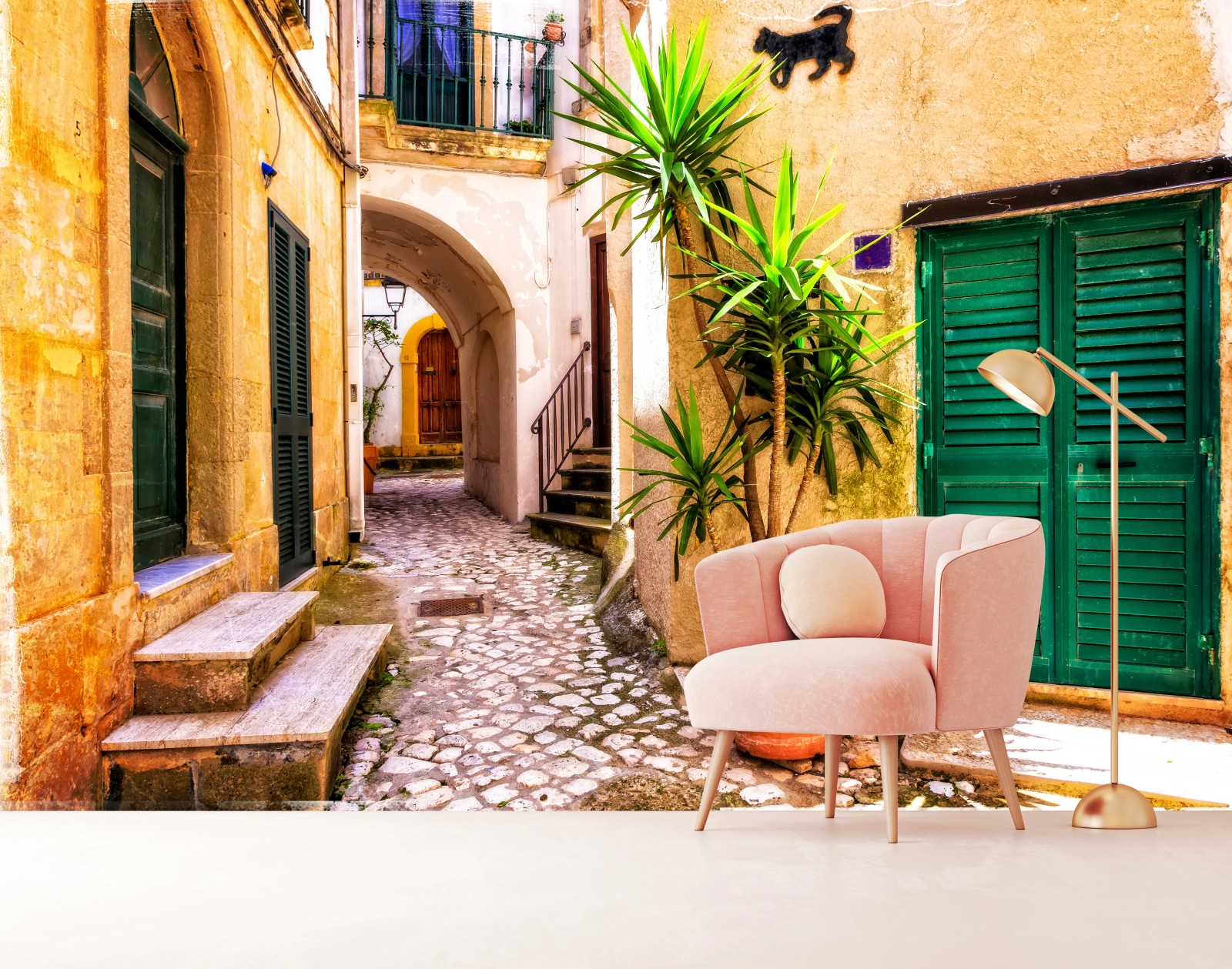 Fototapeta Słoneczna śródziemnomorska uliczka z zielonymi okiennicami