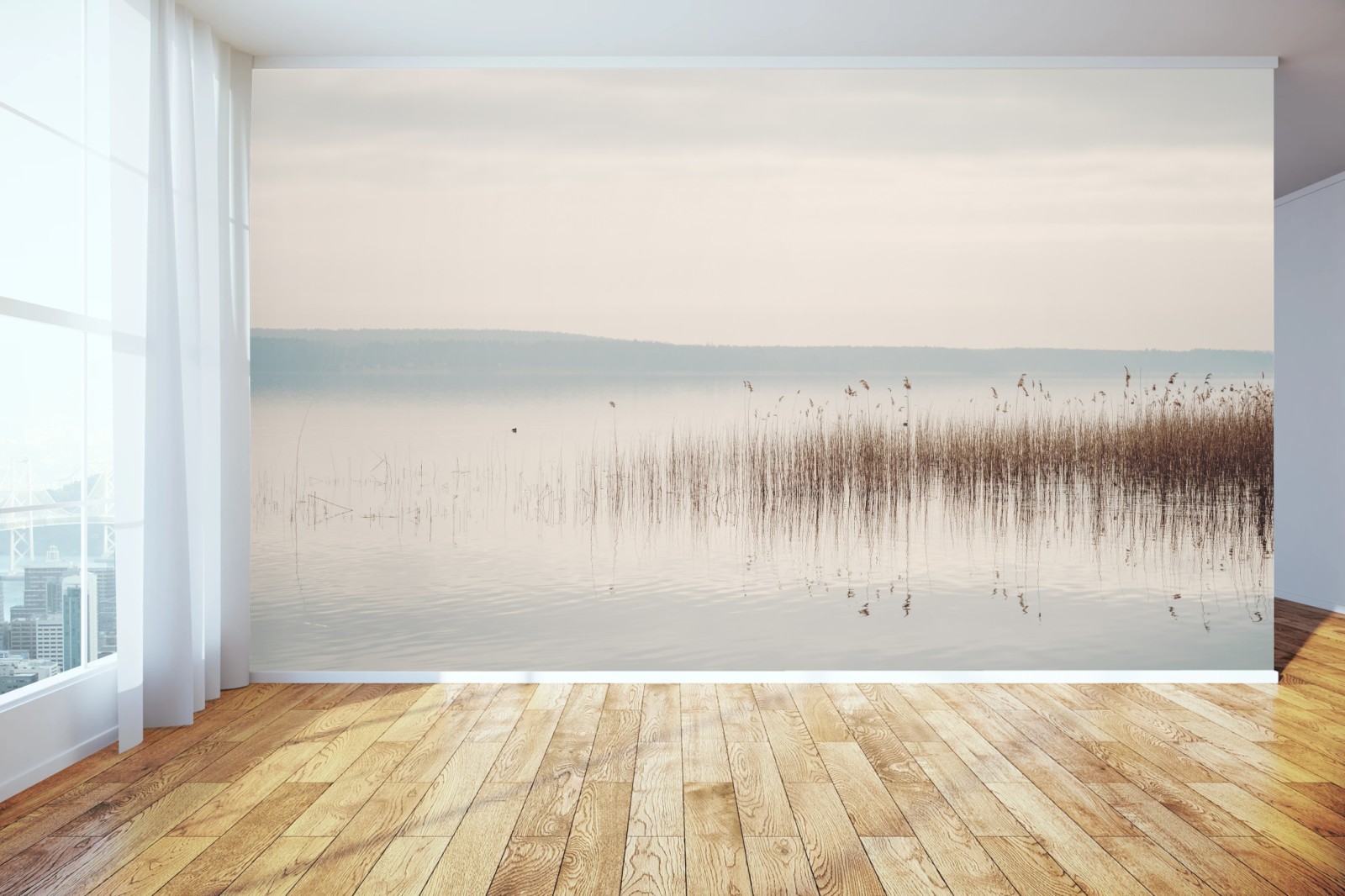 Fototapeta Spokojne trzcinowisko nad jeziorem