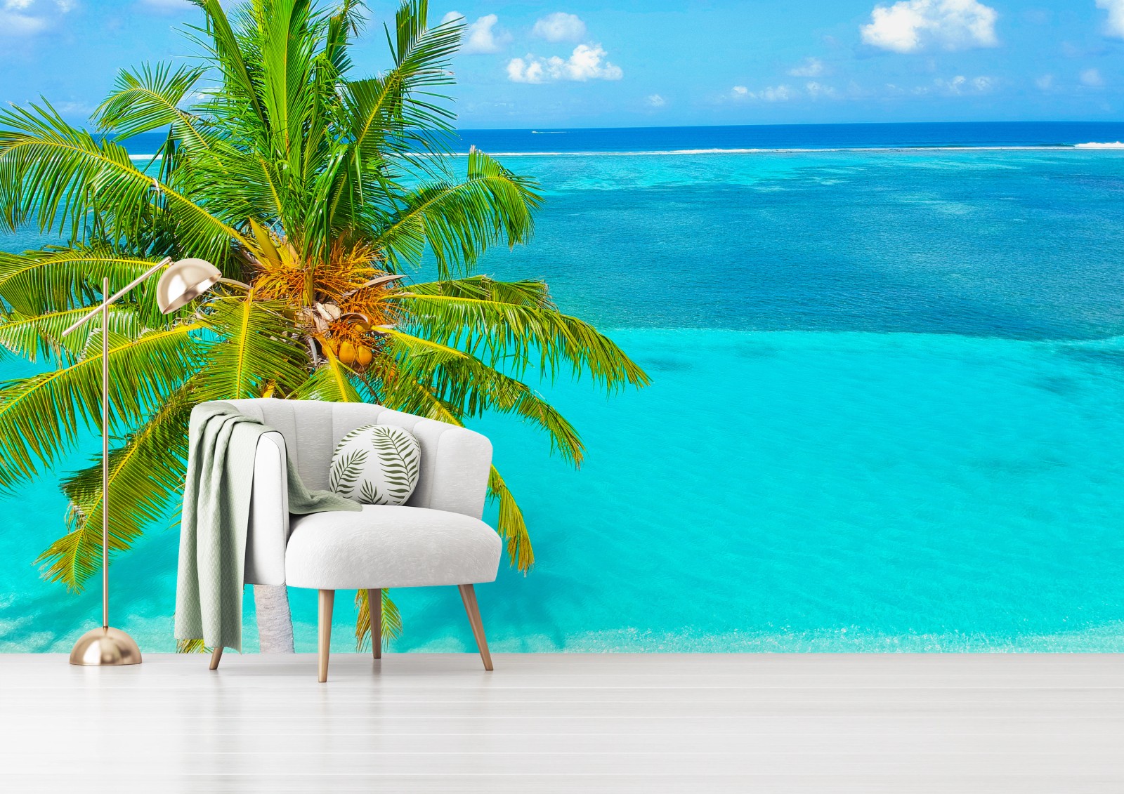 Fototapeta Tropikalna turkusowa plaża z palmą
