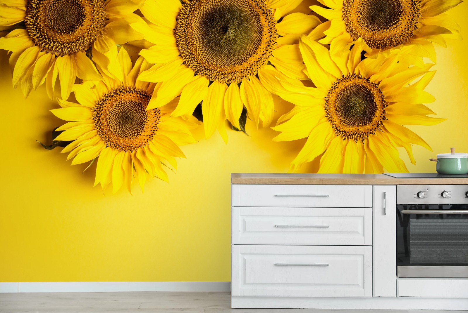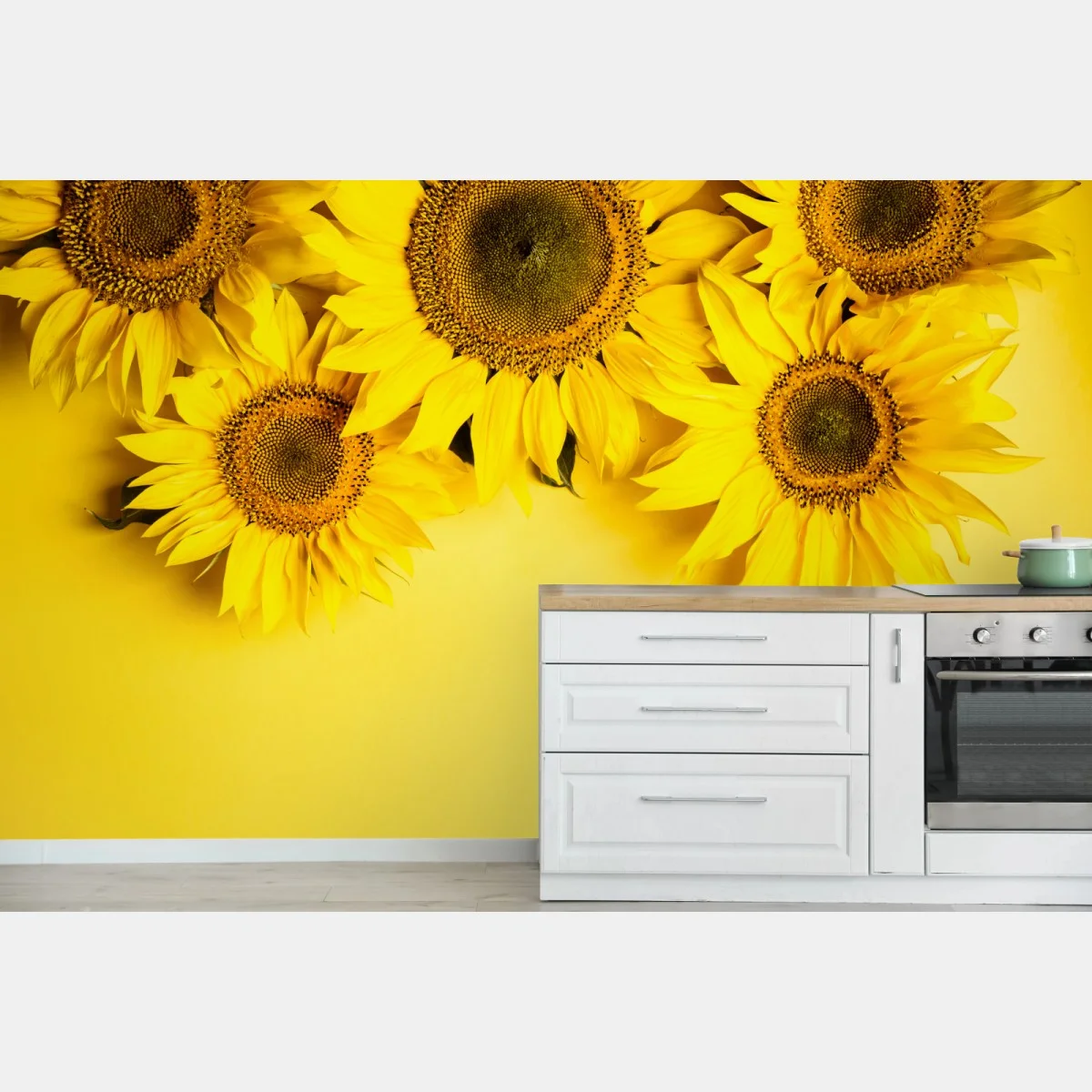 Fototapeta Jasny bukiet słoneczników na żółtym tle
