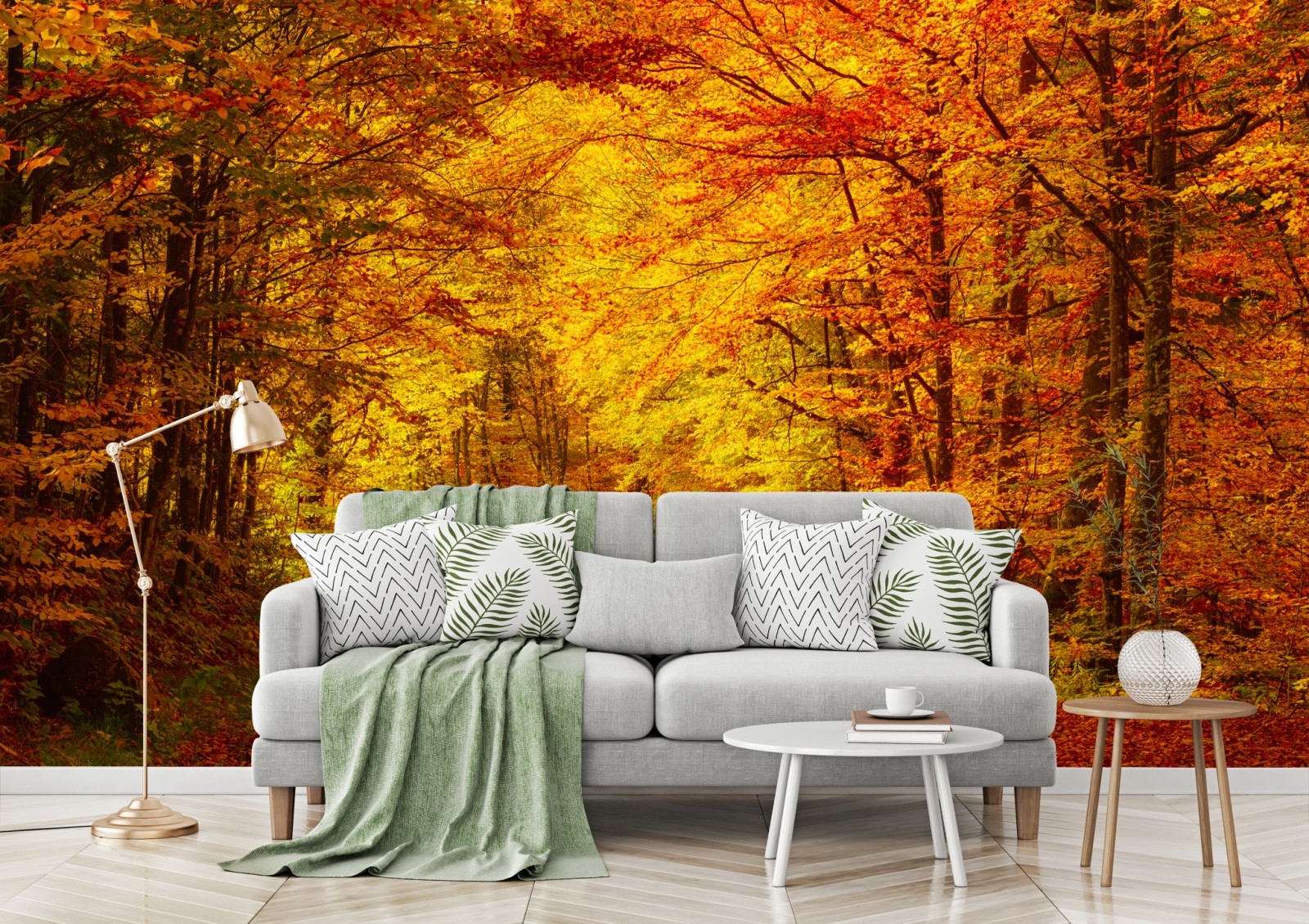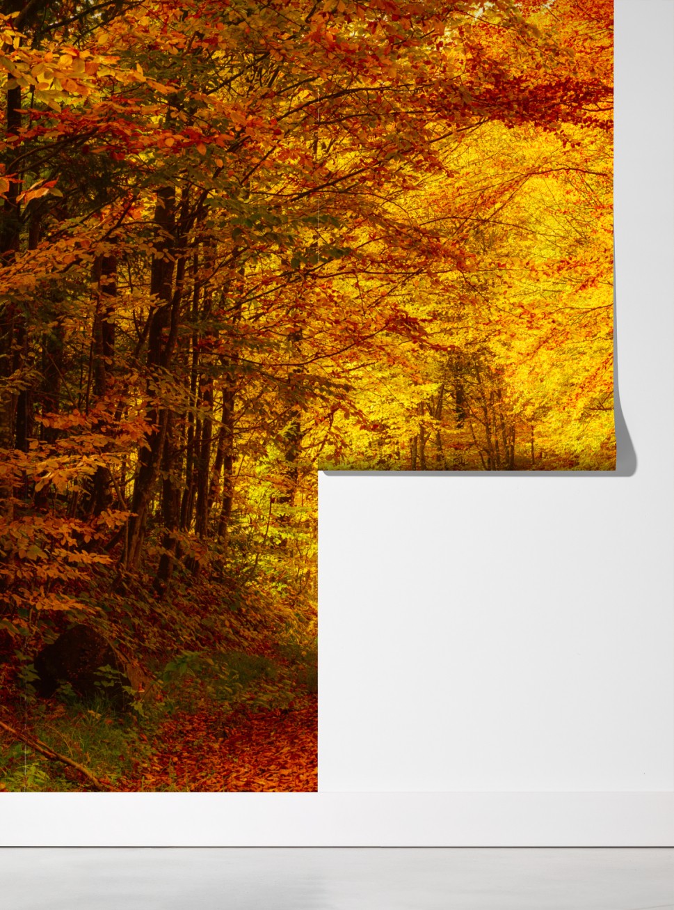 Wprowadź ciepło złotego jesiennego lasu do swojego wnętrza dzięki temu intensywnemu obrazowi natury, idealnemu do stworzenia przytulnej atmosfery.