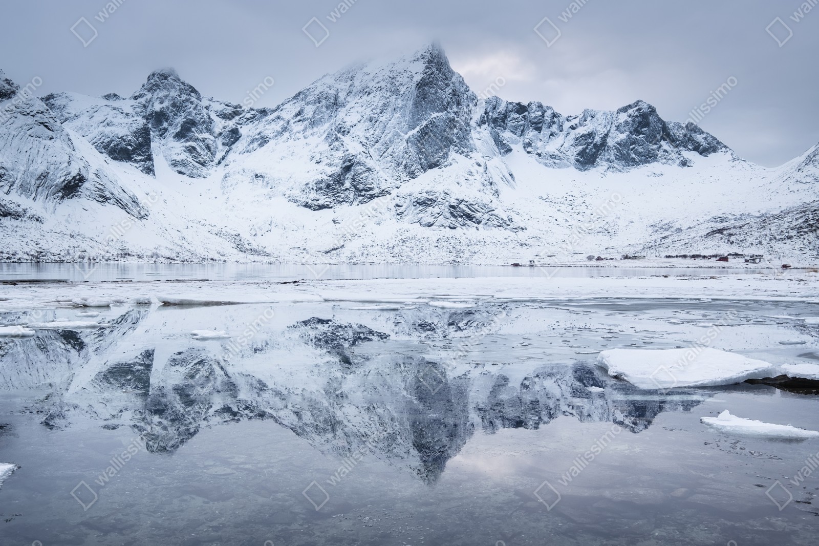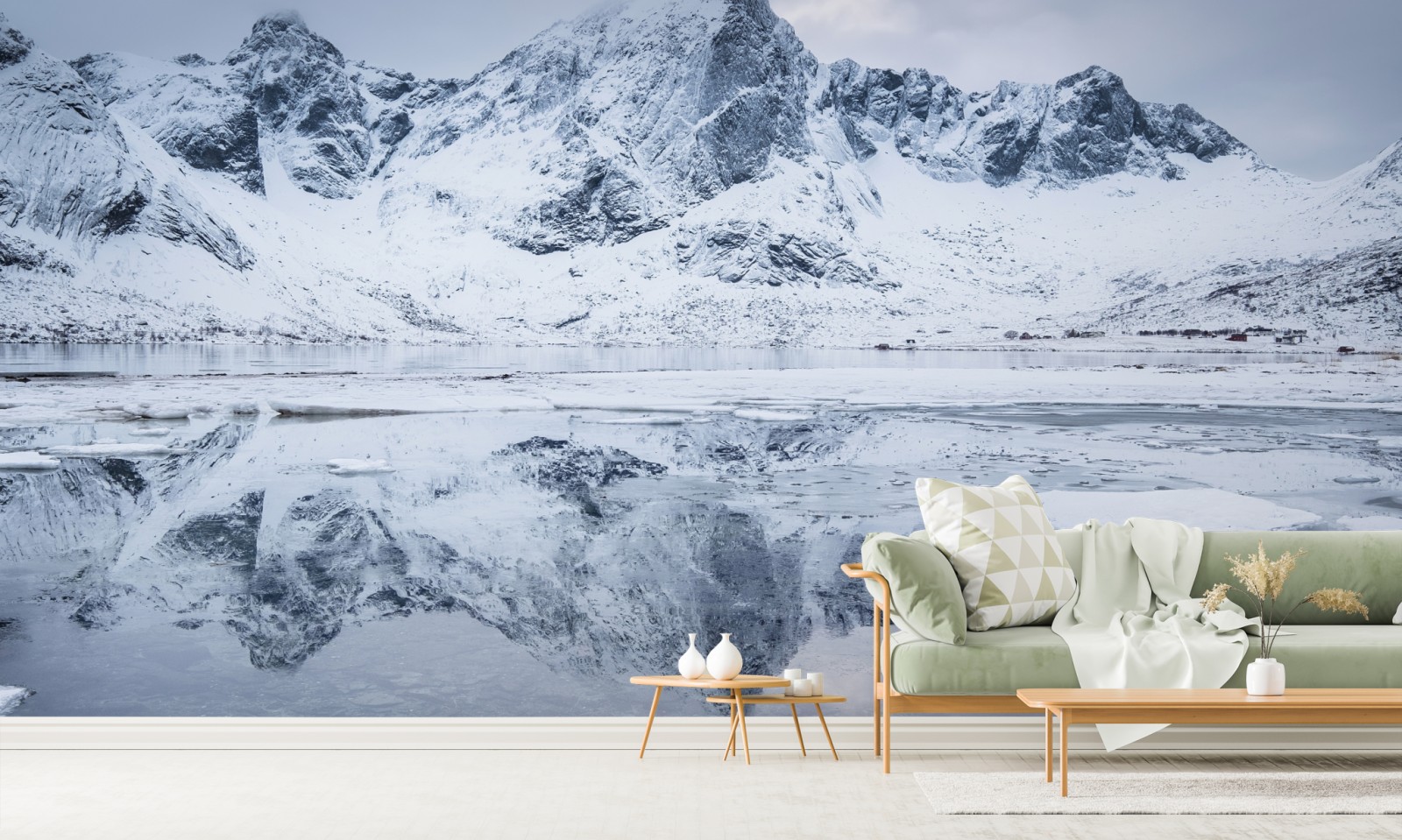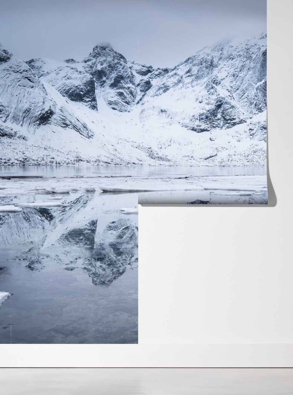 Przenieś spokój nordyckiego krajobrazu do wnętrza dzięki odbiciu zaśnieżonych gór w lustrze wody.