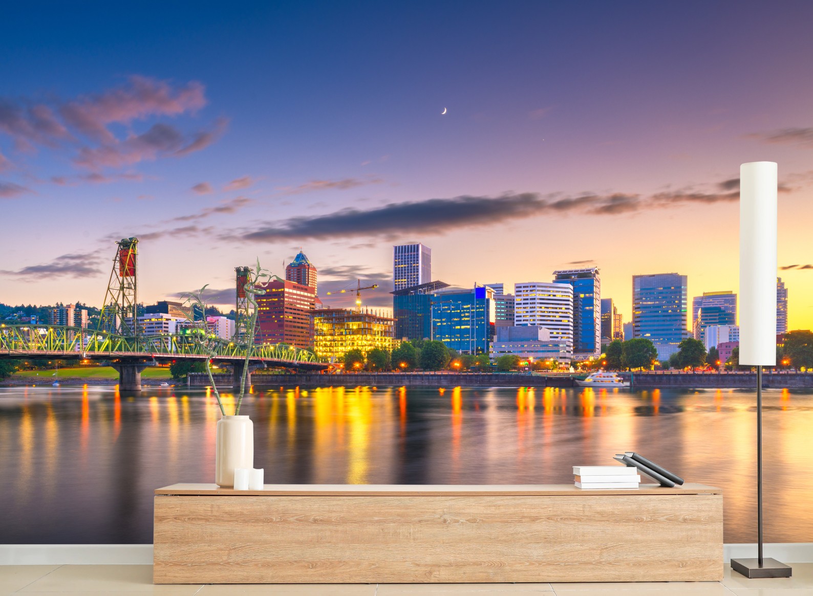 Fototapeta Portland panorama miasta o zmierzchu nad rzeką Willamette