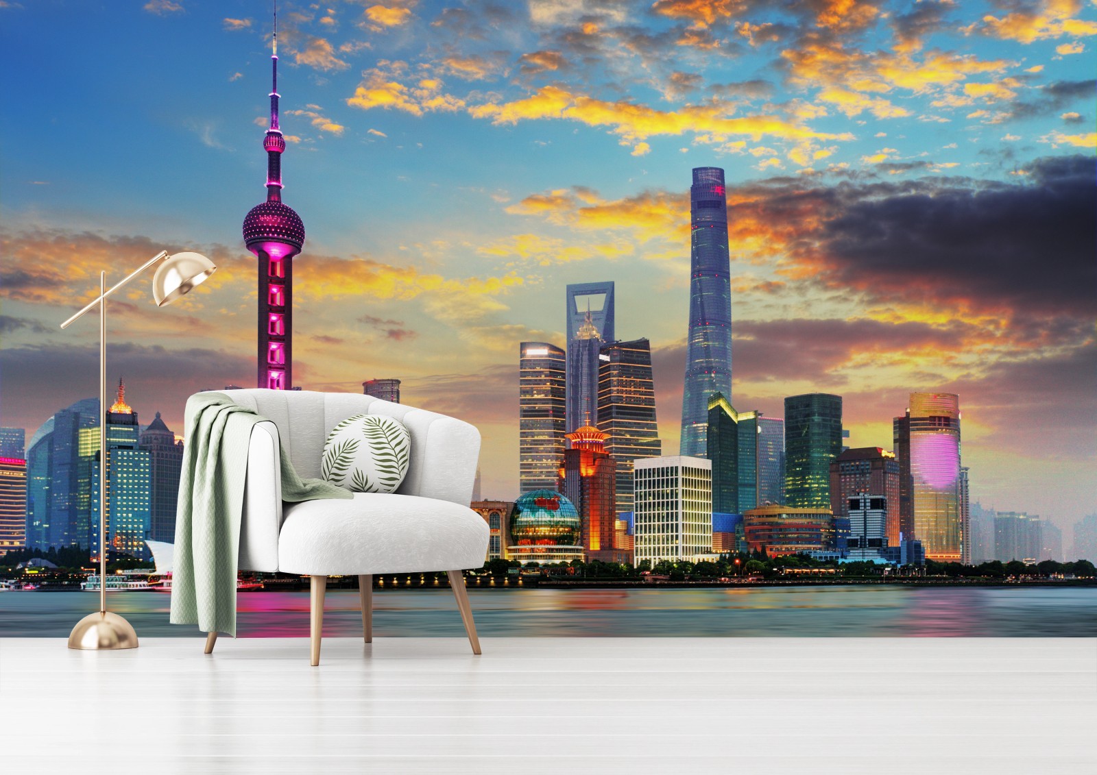 Fototapeta Szanghaj panorama miasta o zachodzie słońca
