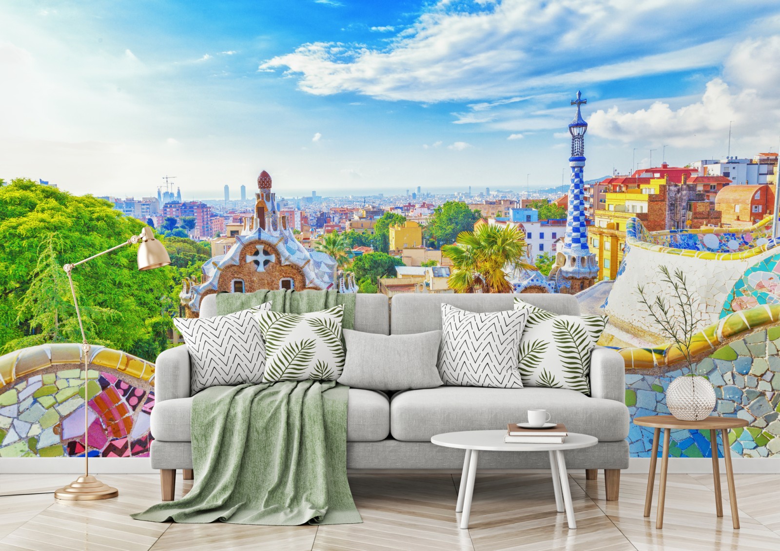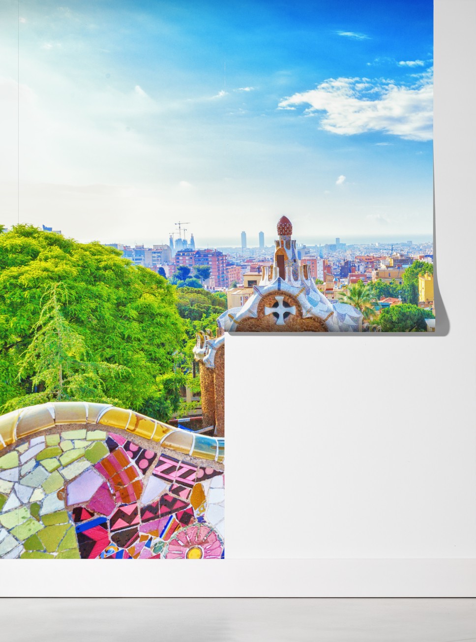 Wprowadź kolorową energię Barcelony do wnętrza dzięki temu żywemu widokowi z mozaikami Parku Güell i panoramą miasta.