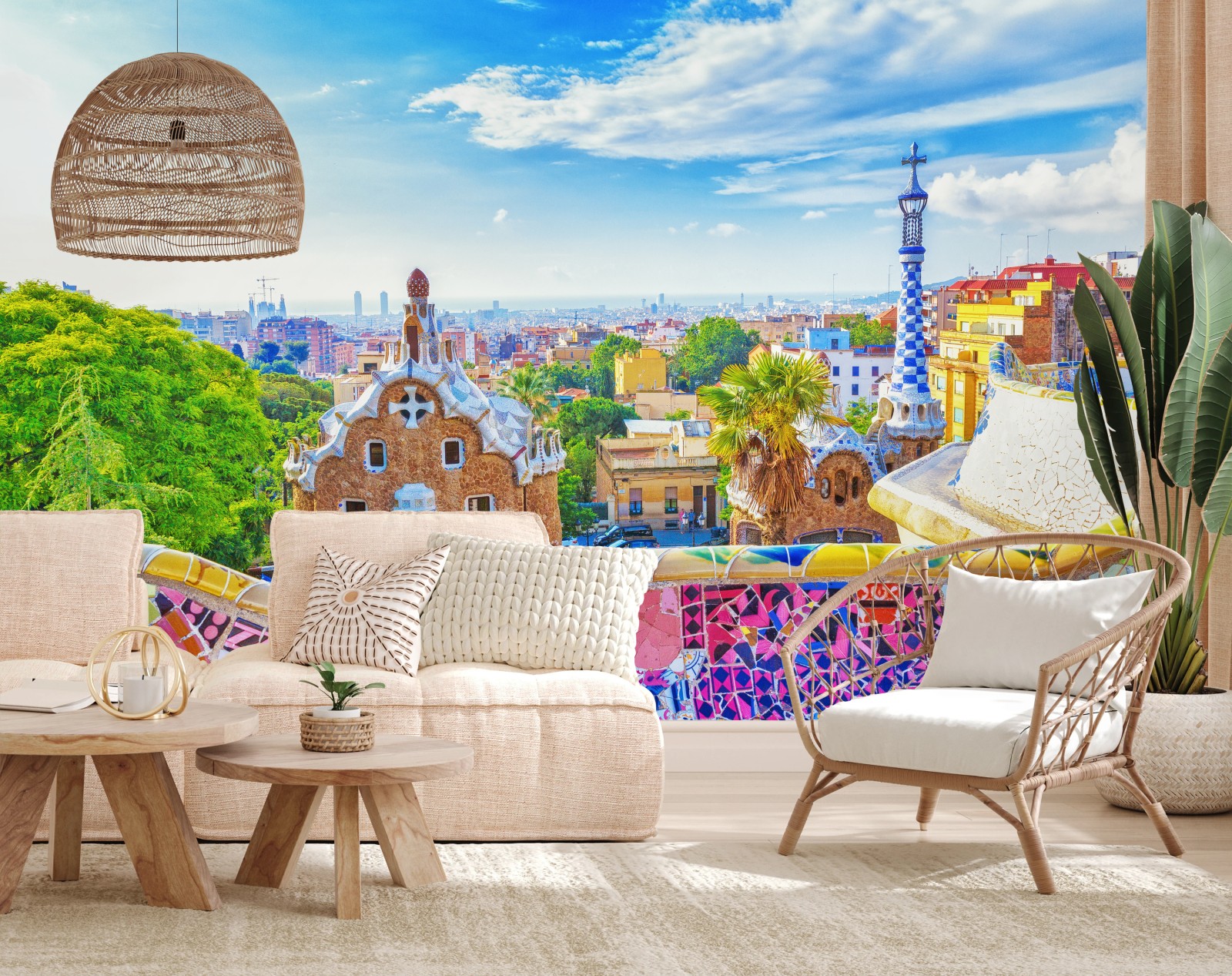 Fototapeta Żywa Barcelona Park Güell mozaikowa panorama
